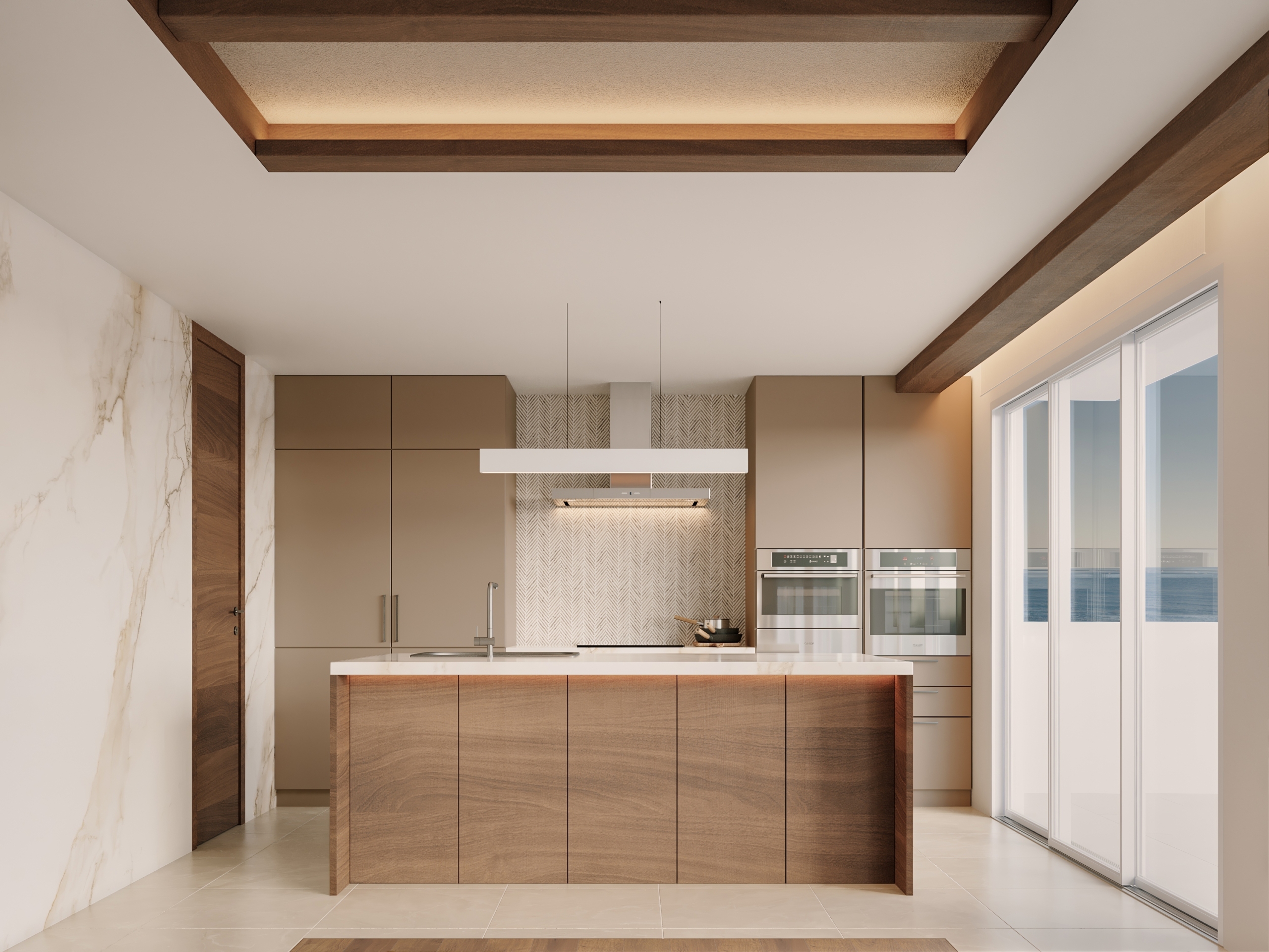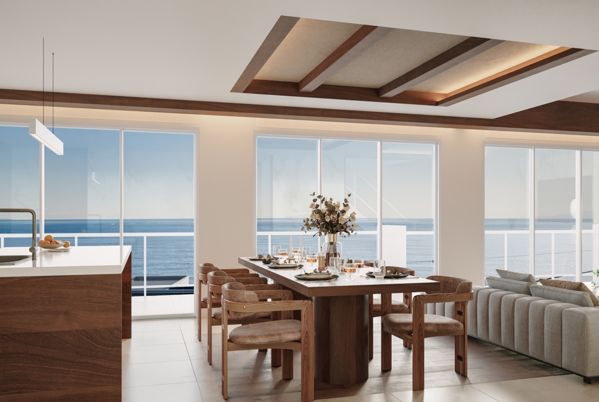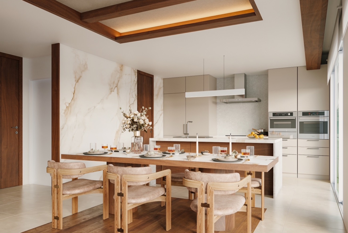 アイランドキッチンでグラスを傾け、屋上のスカイバルコニーで風を感じる贅沢。