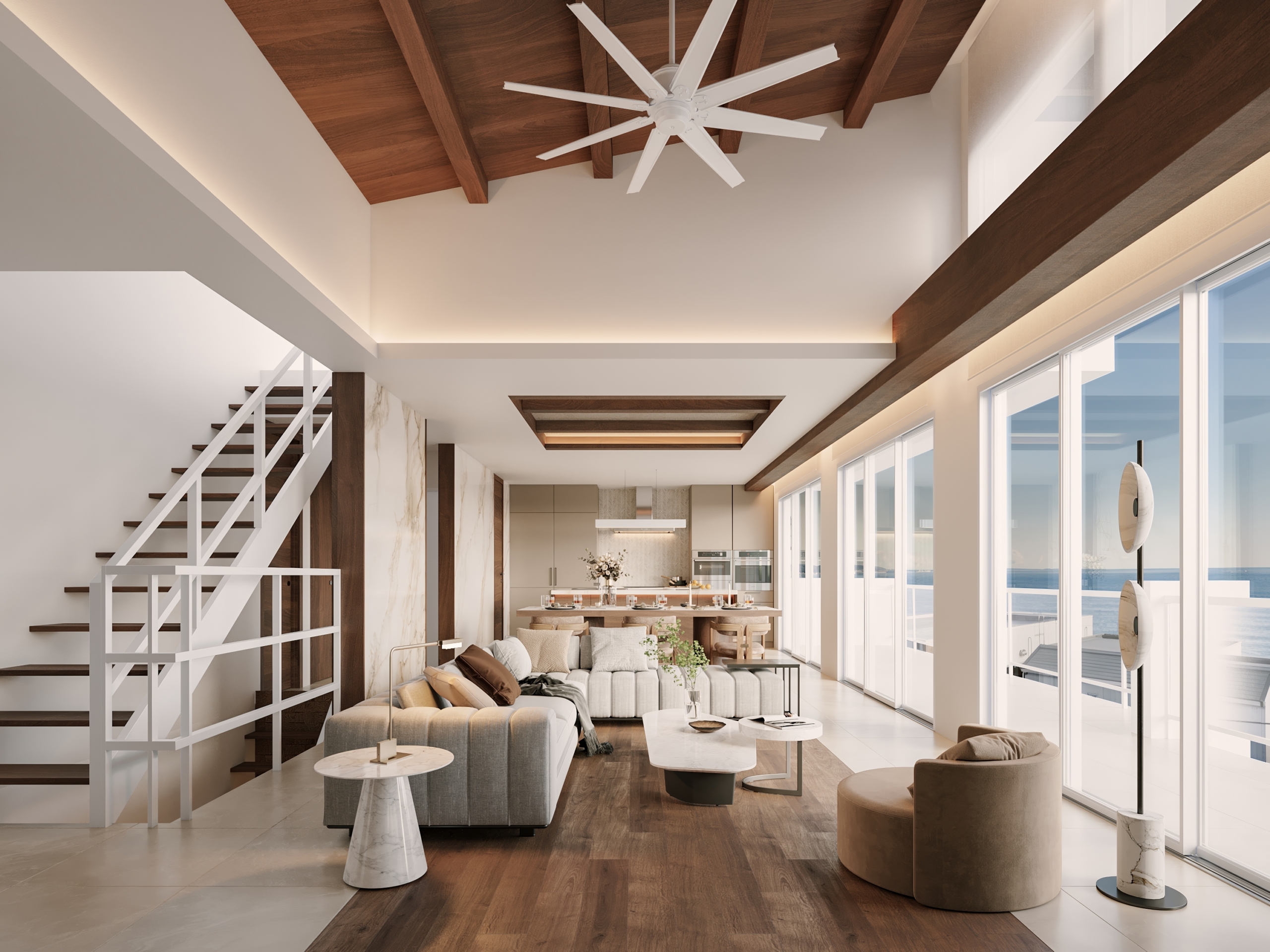 目の前にはパノラマで見下ろすオーシャンビュー。まるでいつか憧れた海に浮かぶ基地のようなガレージ邸宅。
