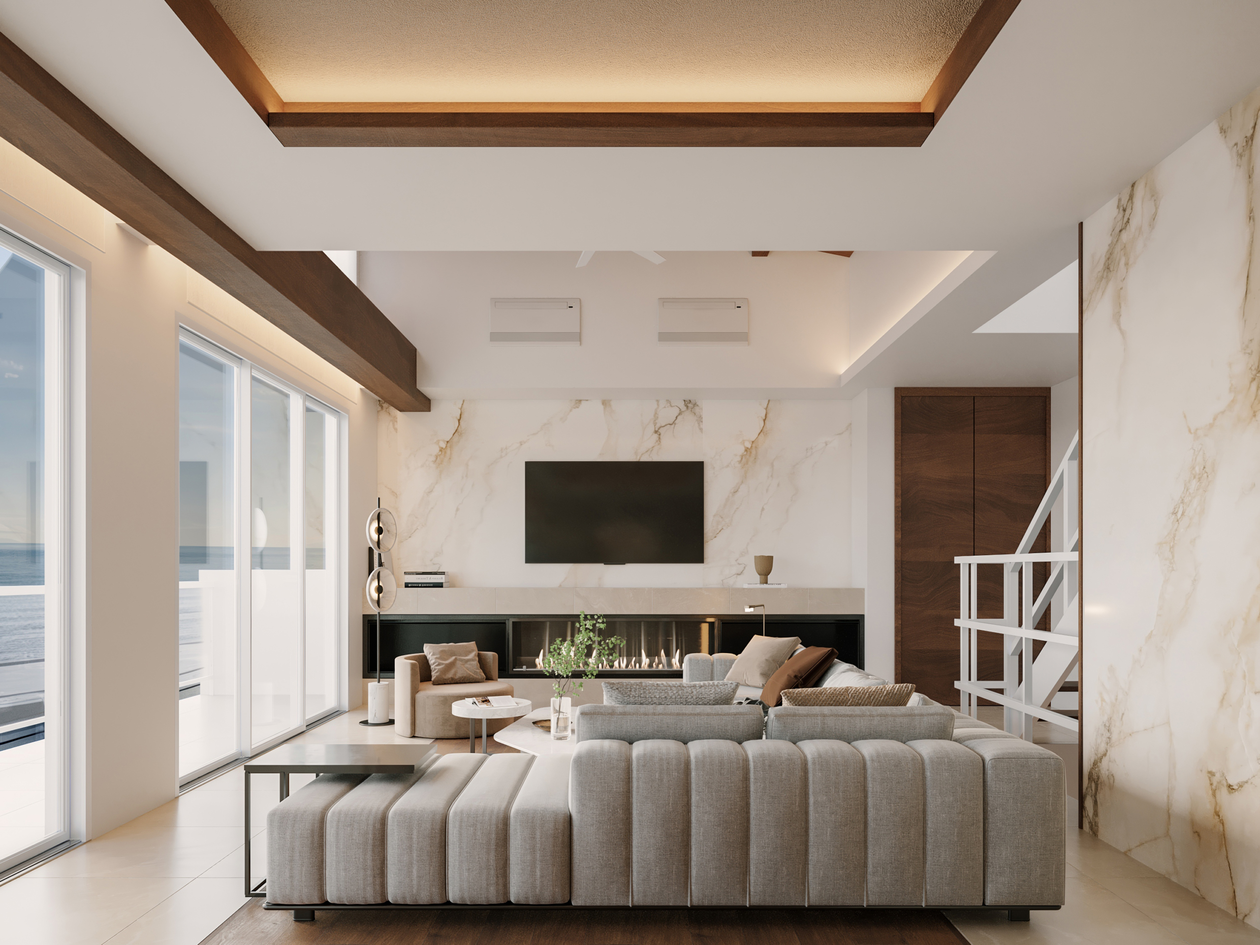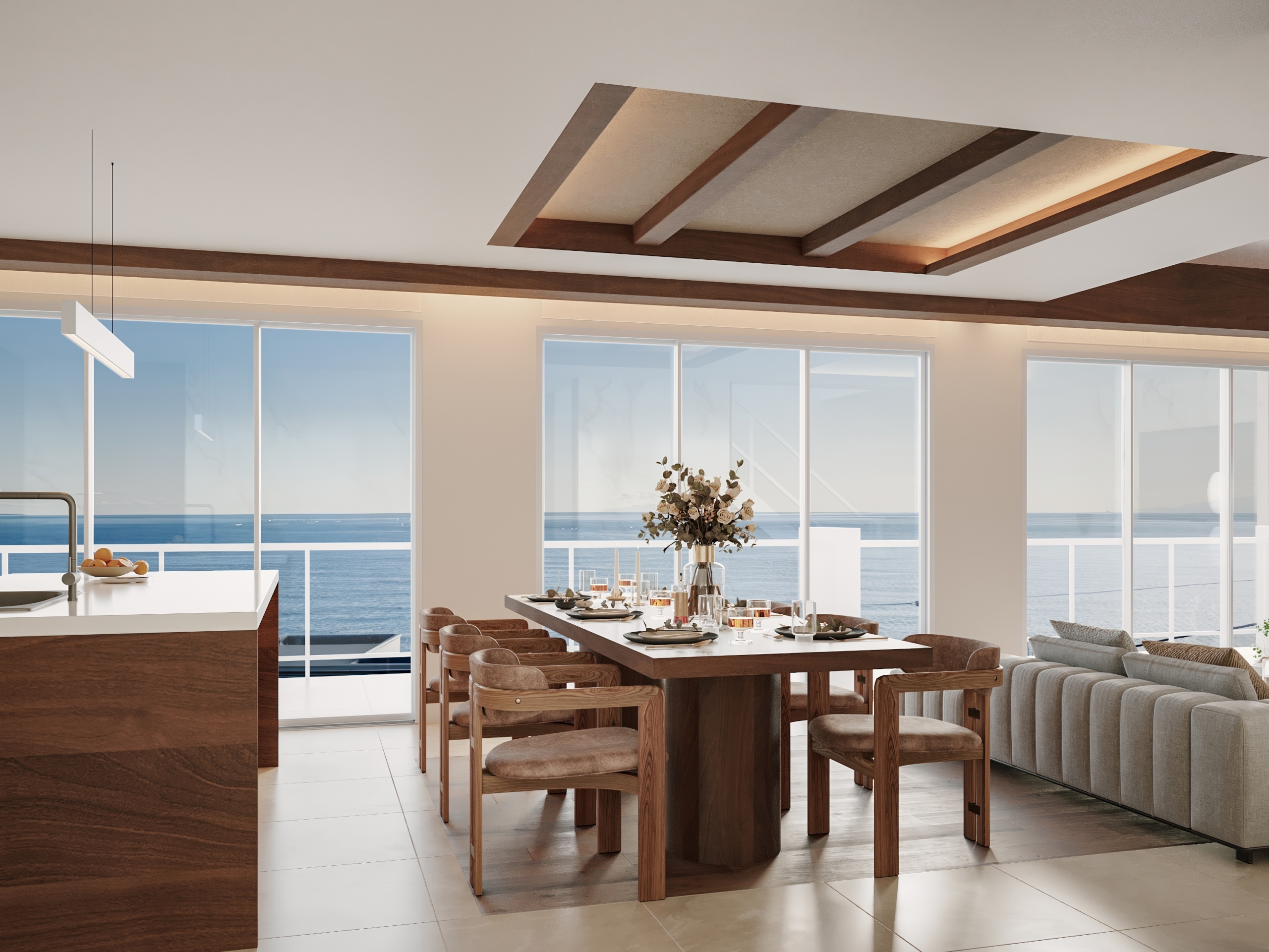 バルコニーでは、海を望みながら江ノ電の音色をBGMに、非日常を日常にする贅沢な邸宅。
