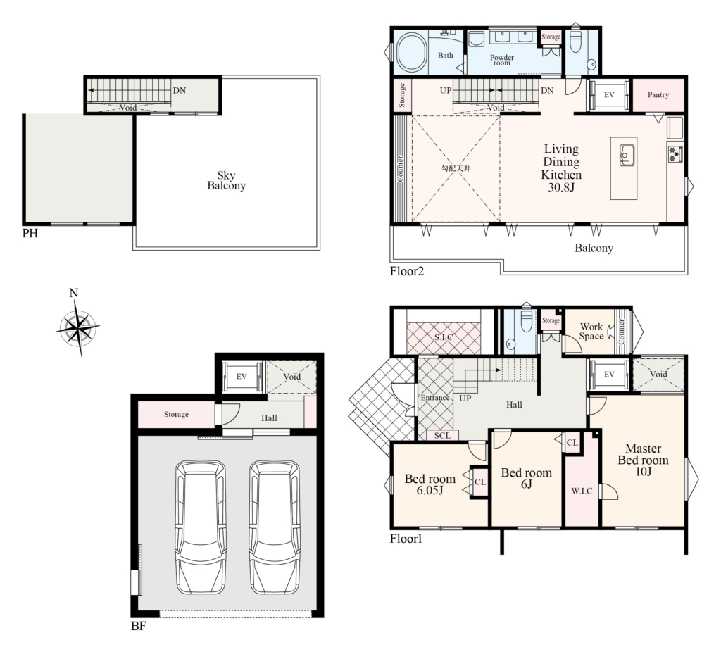 並列2台駐車可能なガレージは大人の隠れ家。