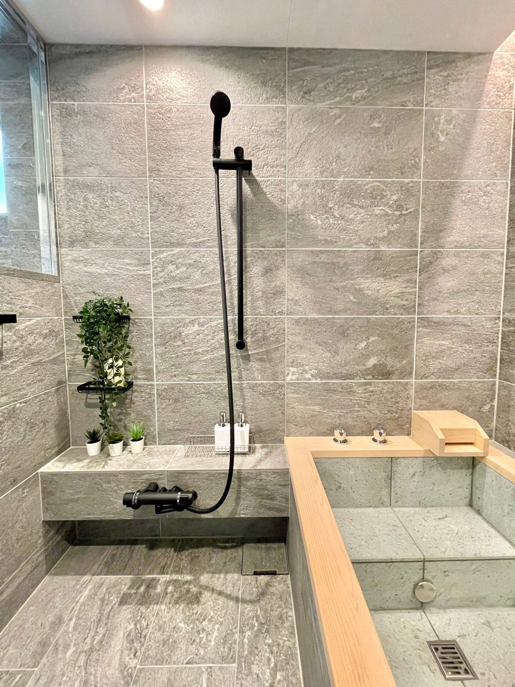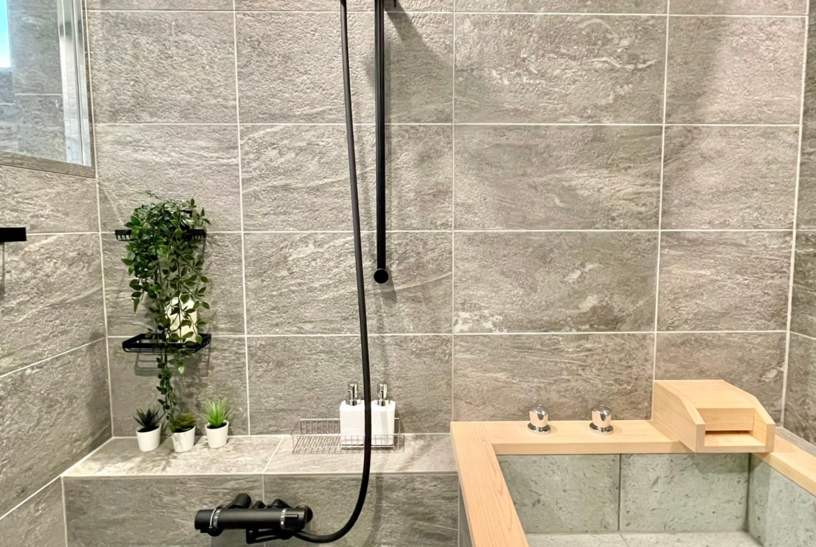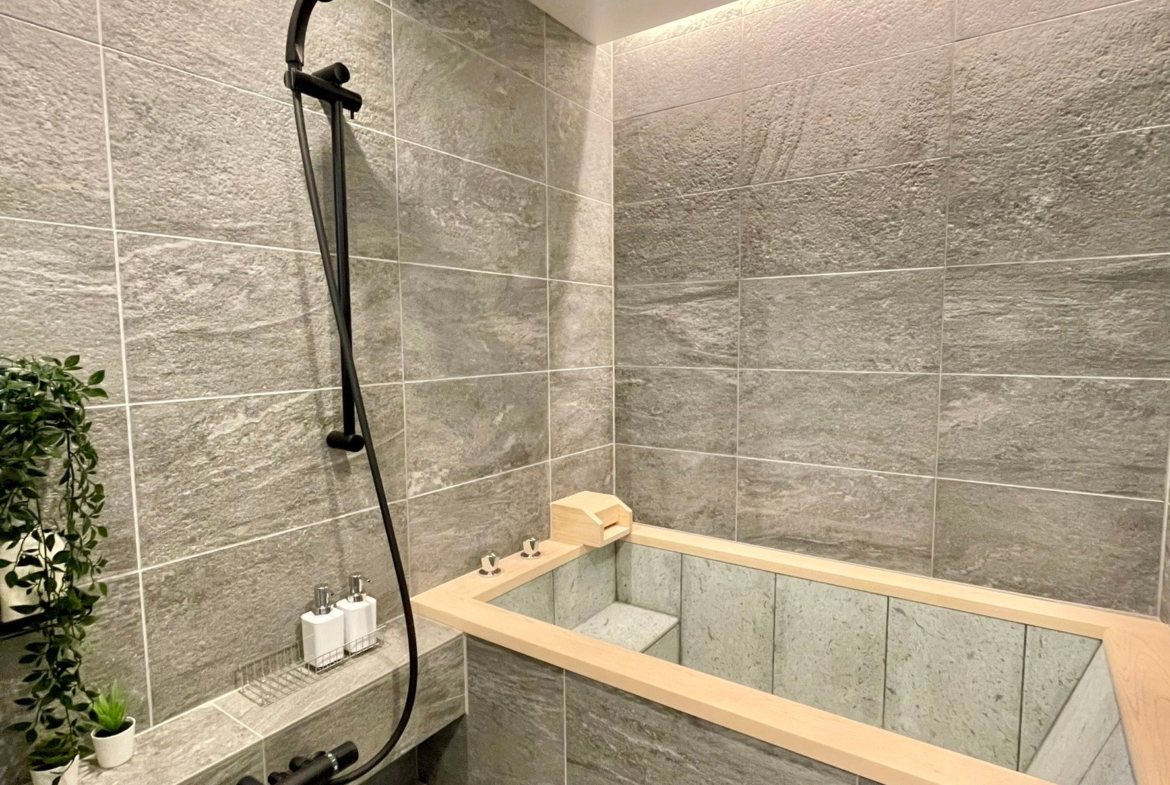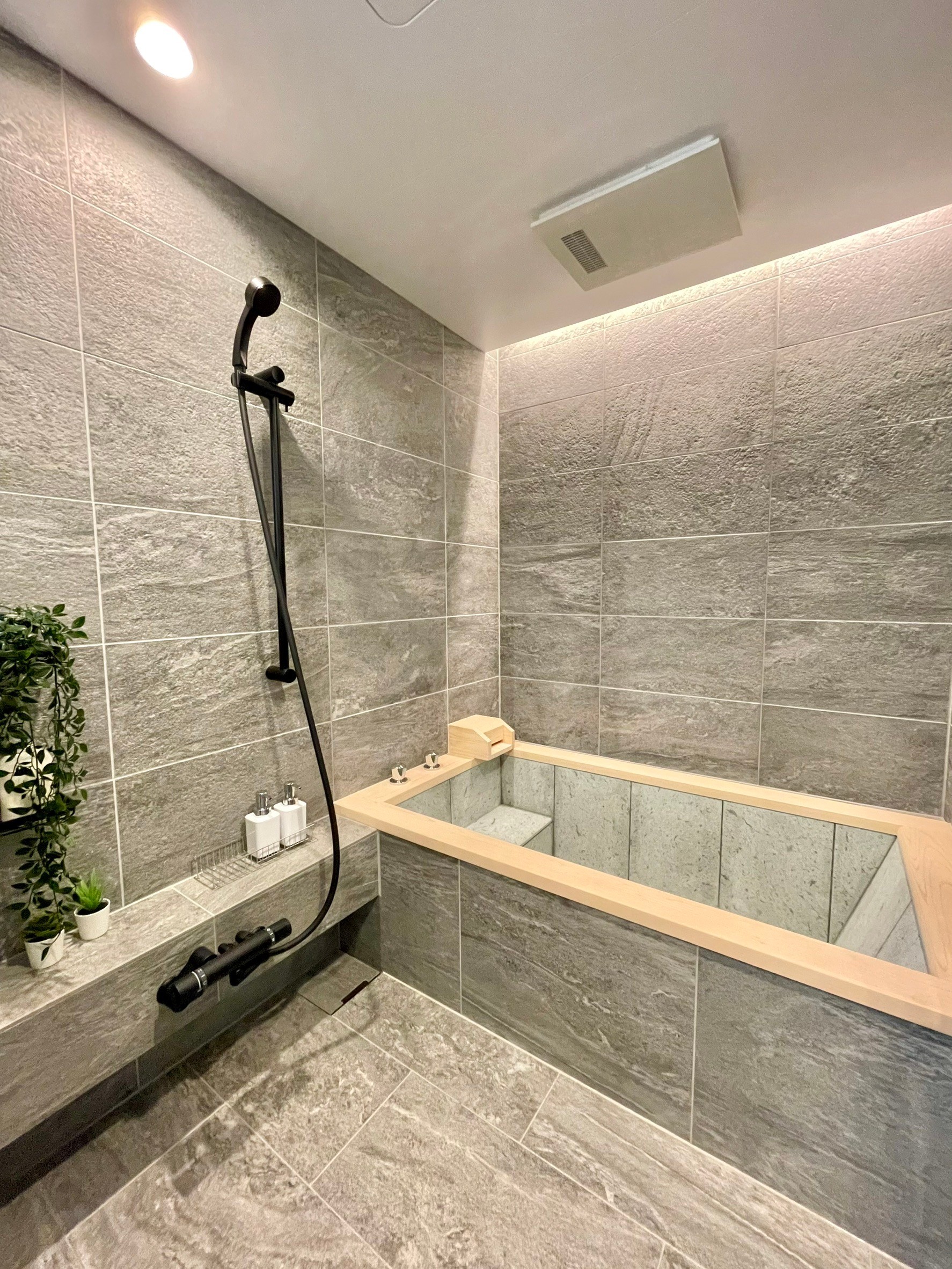 ■WABUROPMM仕様1620サイズ浴室 ロックウッド(檜)+十和田石仕上げ