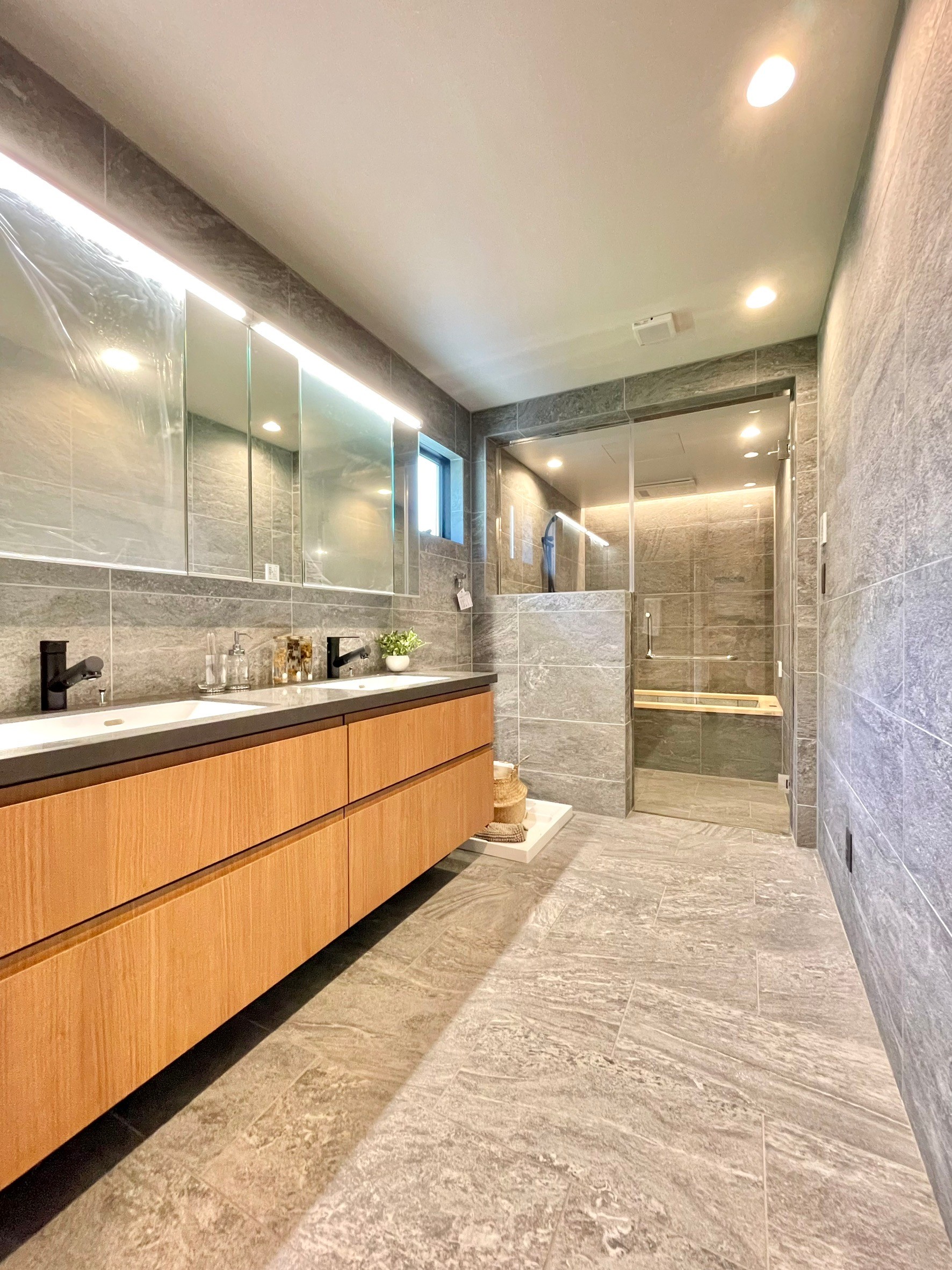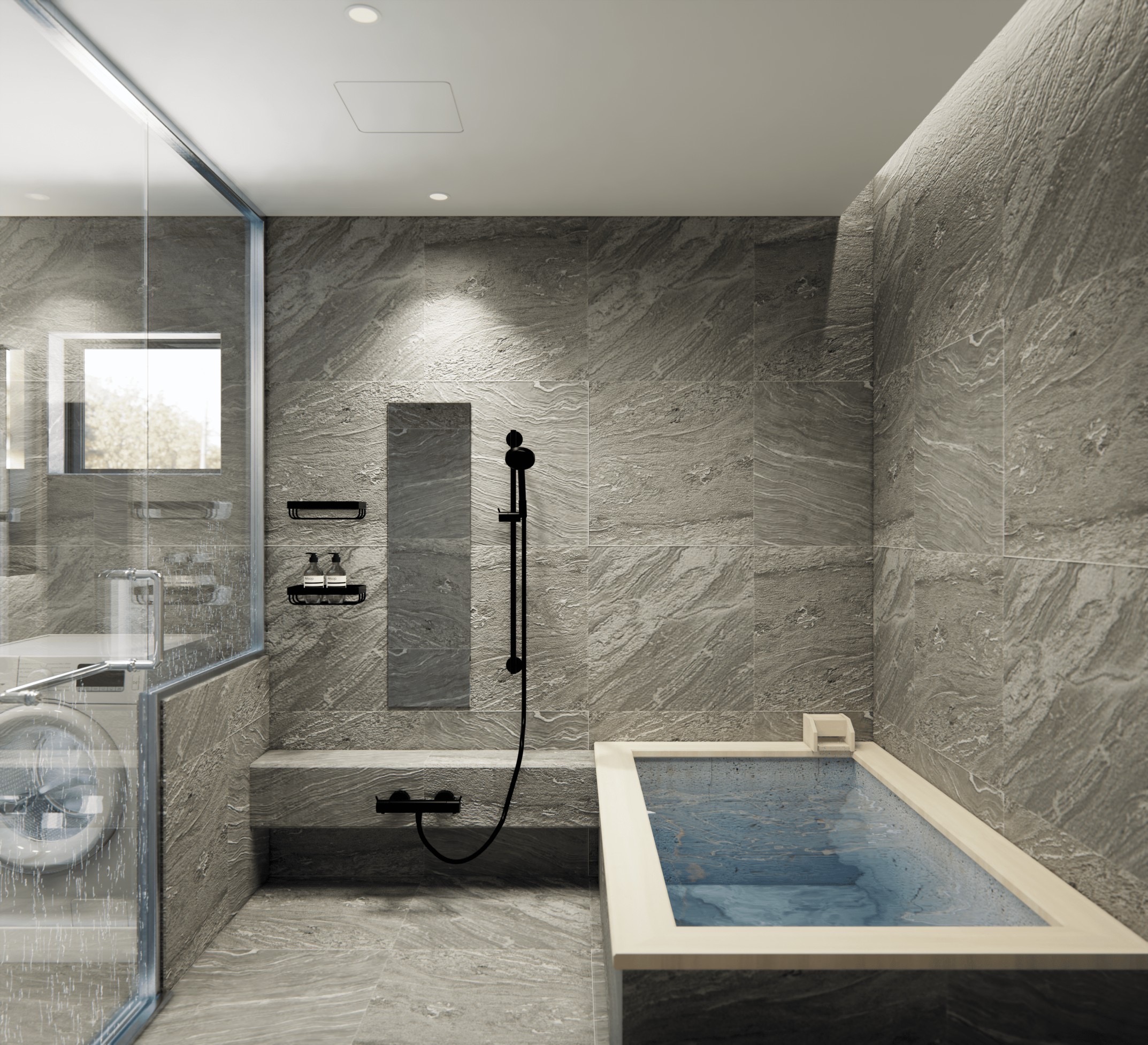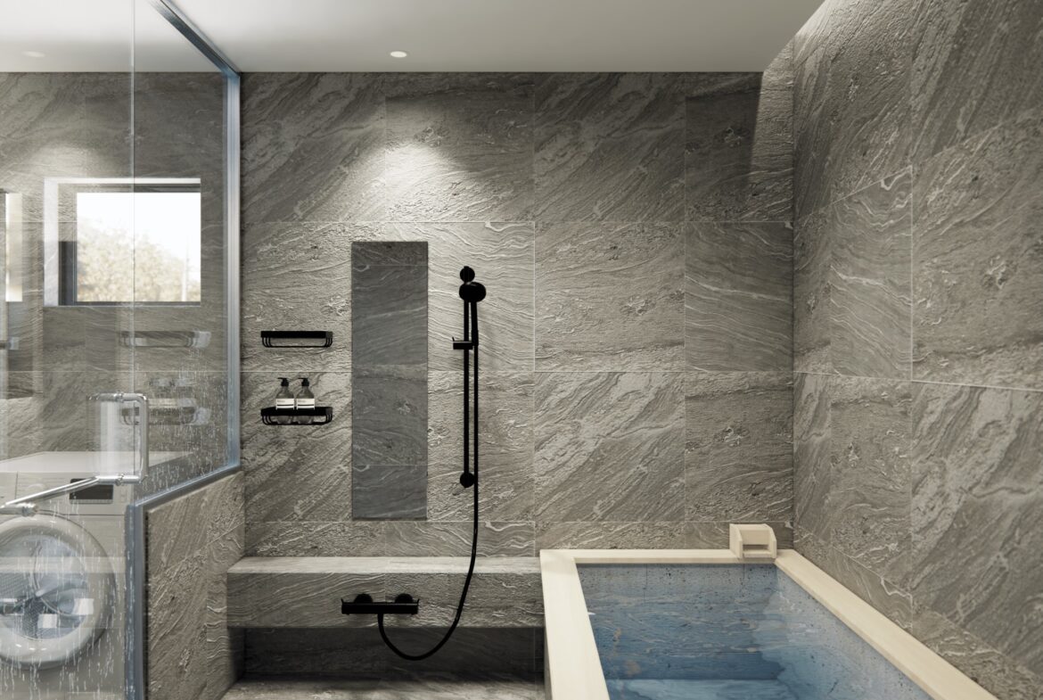 ■WABUROPMM仕様1620サイズ浴室 ロックウッド(檜)+十和田石仕上げ