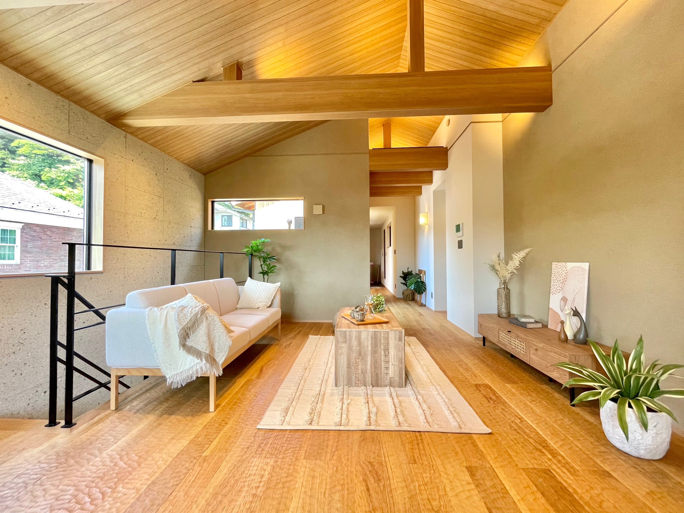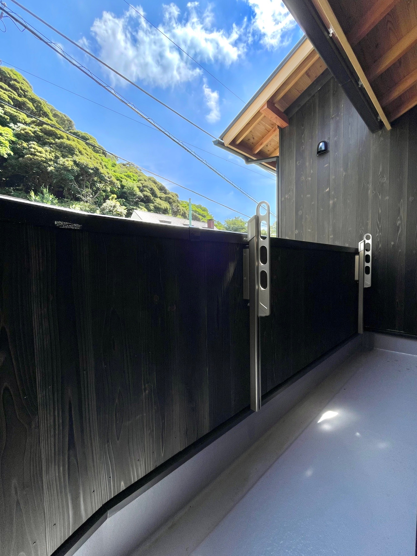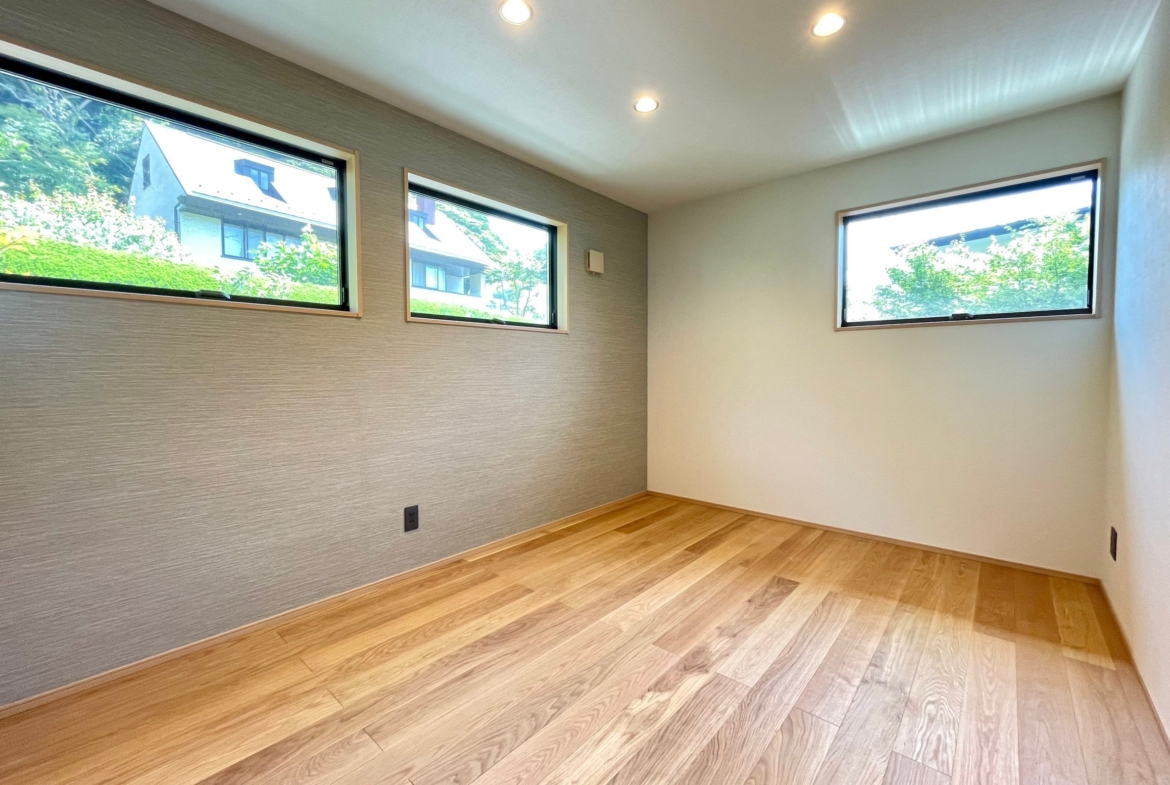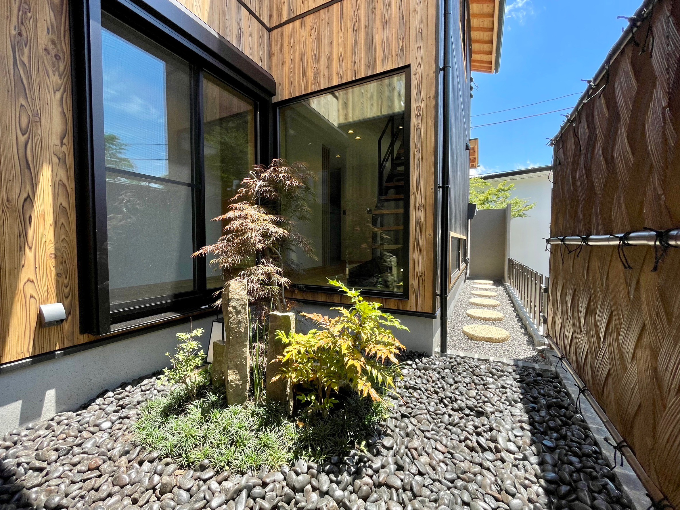 本物件の建物は、外壁に焼杉の羽目板、室内床には無垢のなぐり床など高級建材を使用。