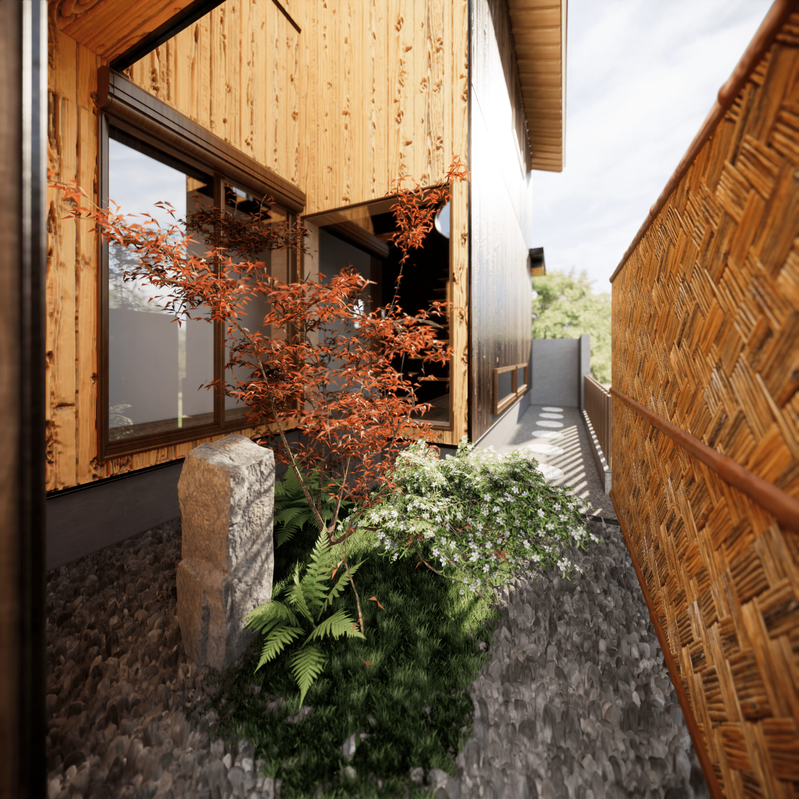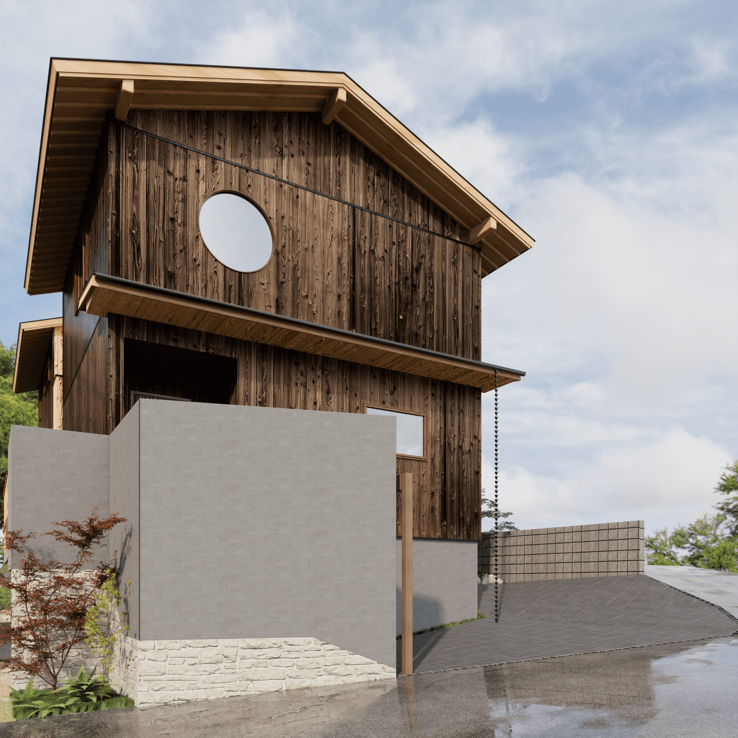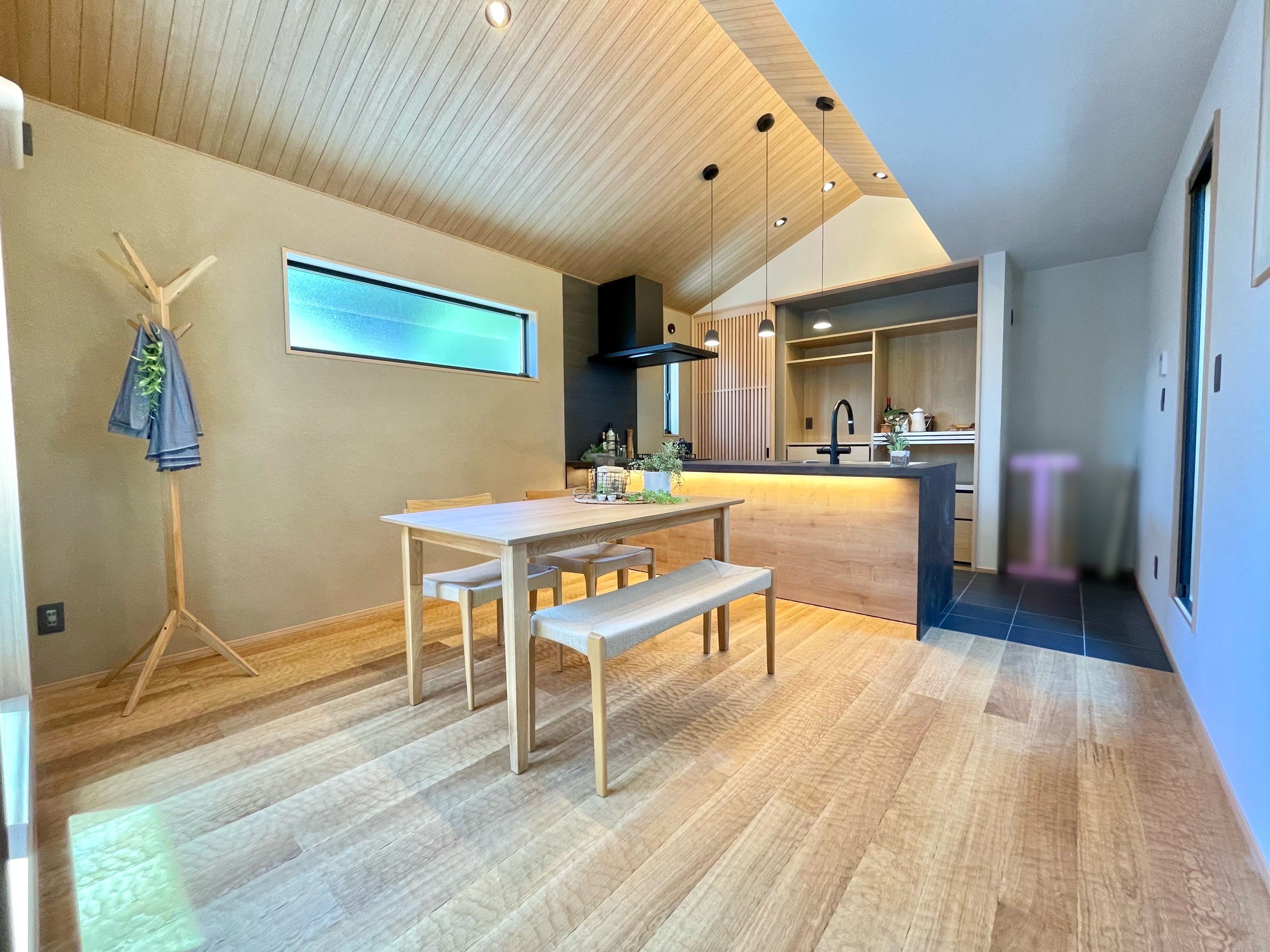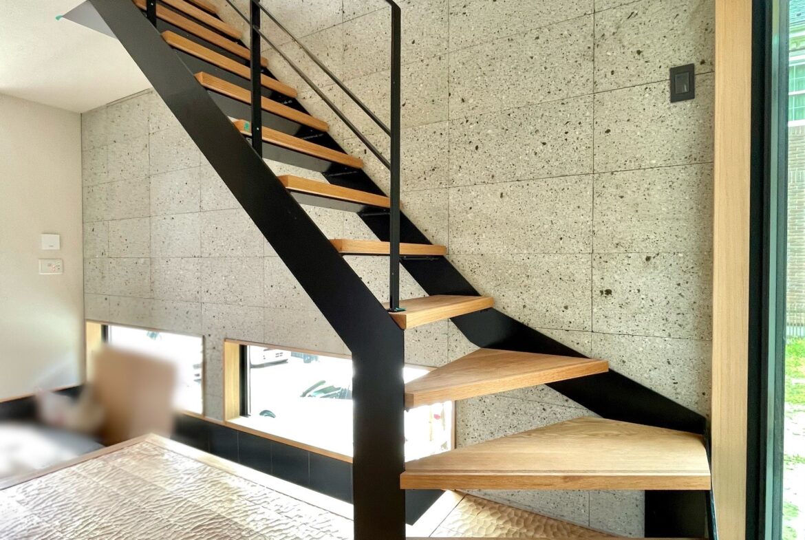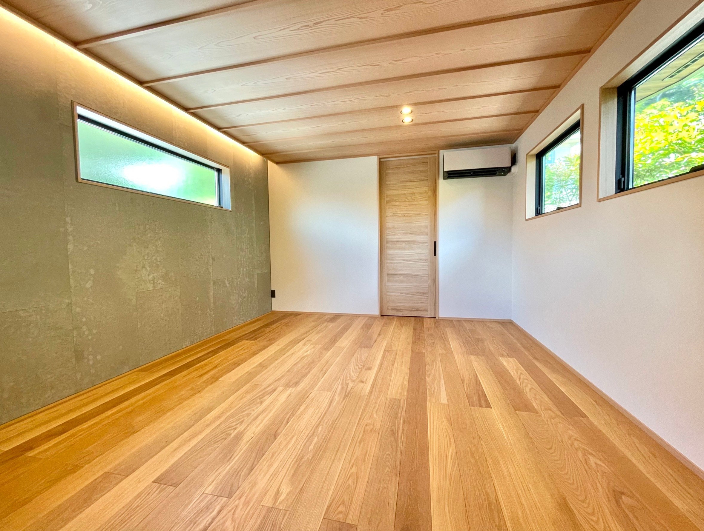 本物件の建物は、外壁に焼杉の羽目板、室内床には無垢のなぐり床など高級建材を使用。