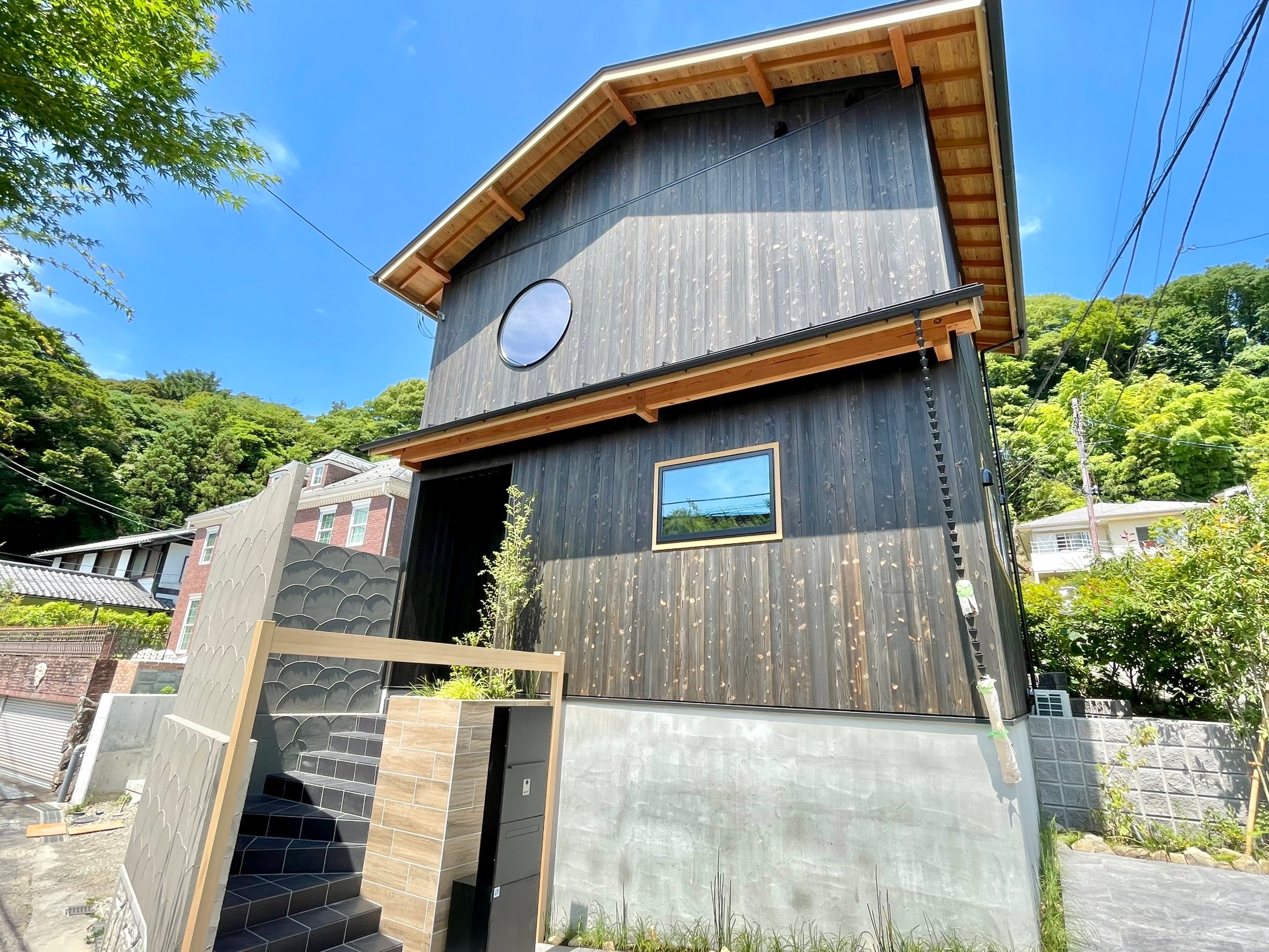 石張に檜を使った浴室など高級旅館をイメージした鎌倉の雰囲気にマッチした建物です。