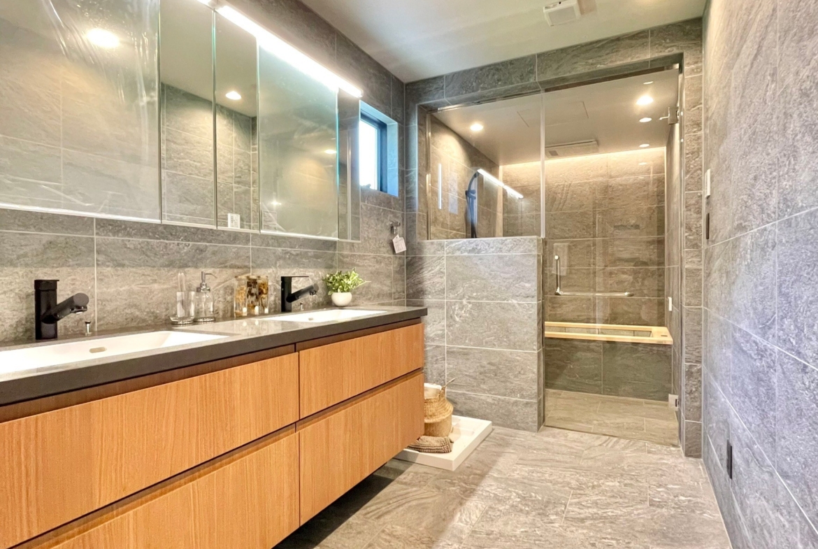 洗面台/2ボウルスマートサニタリー L1820、1階ホール造作洗面
