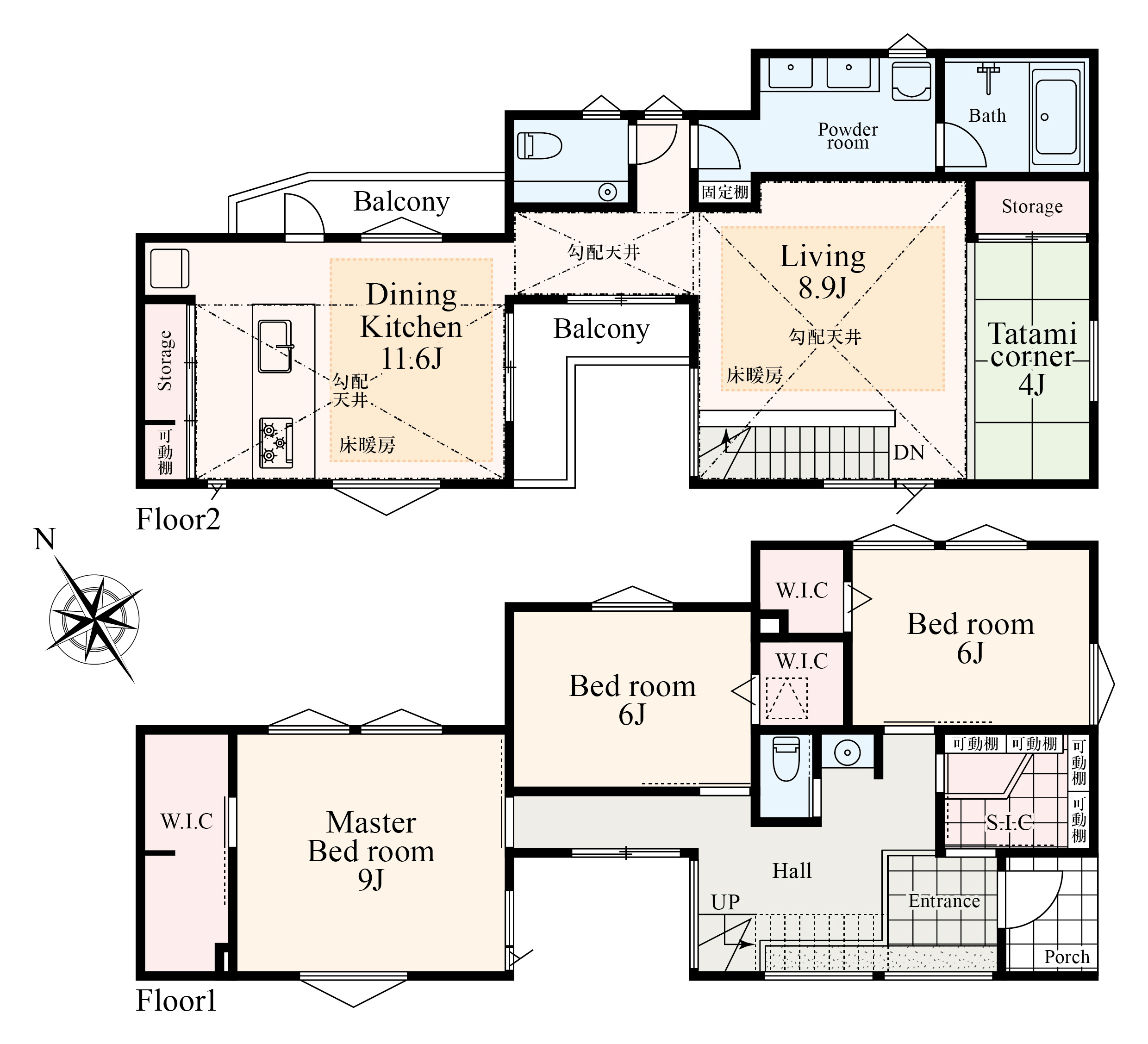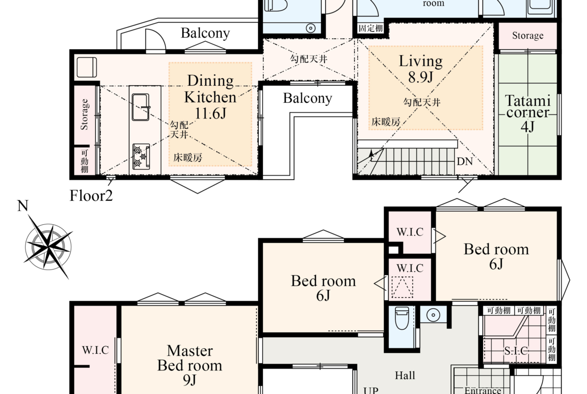 間取り:3LDK(リビング8.9帖 / ダイニングキッチン11.6帖 / 居室①9帖 / 居室②6帖 / 居室③6帖)