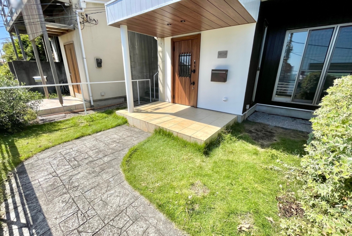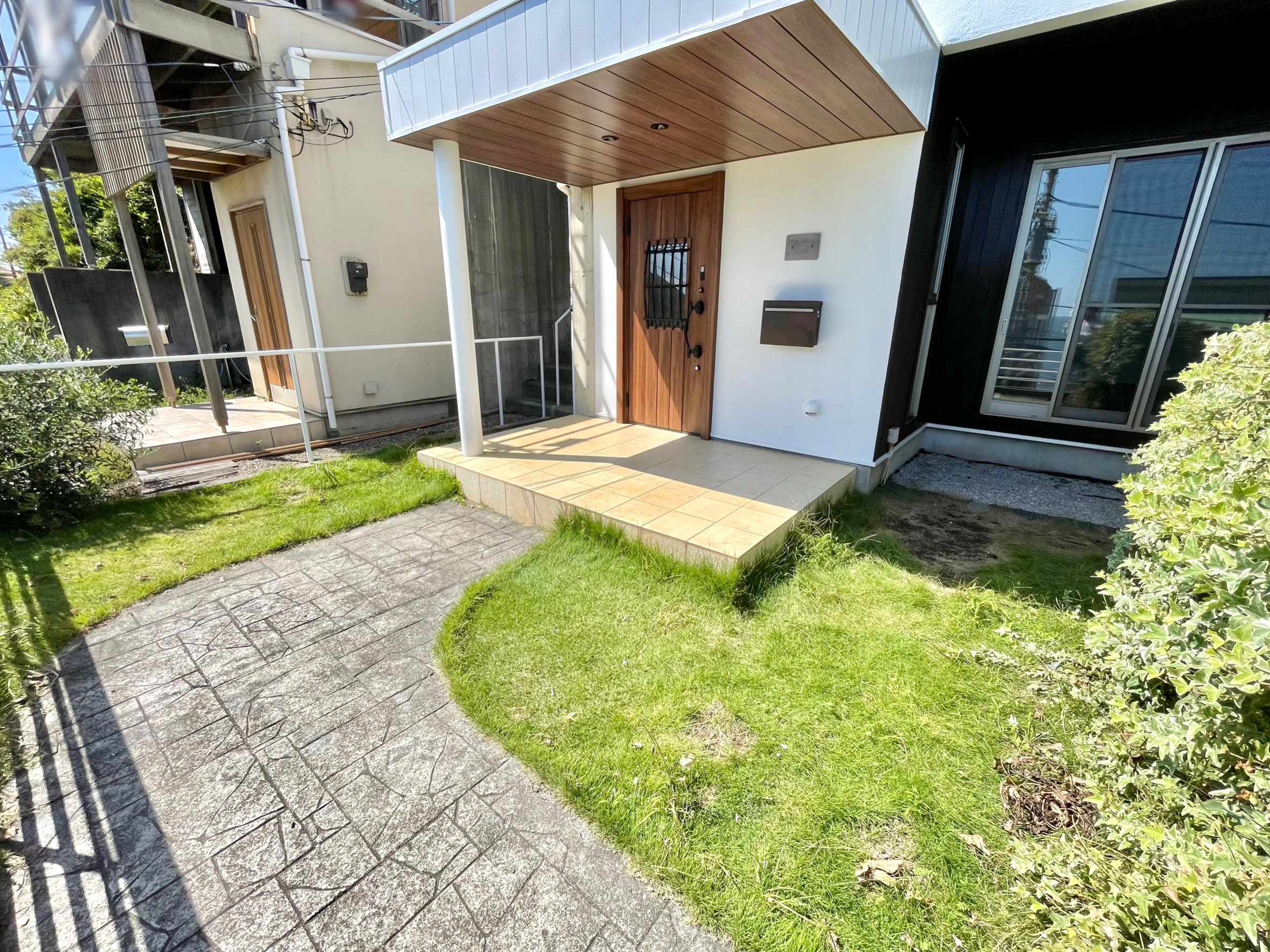 玄関先にはお庭スペースがあるので、ワンちゃんと遊んだりBBQやプールも楽しめます。