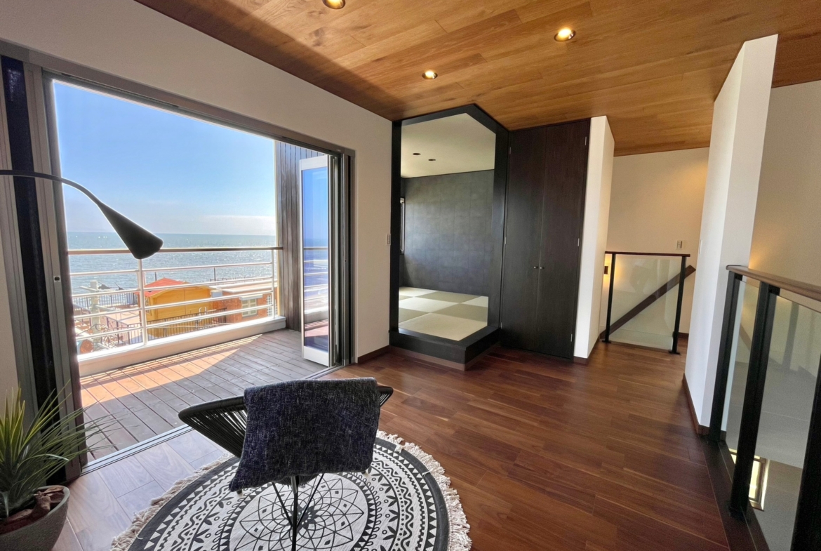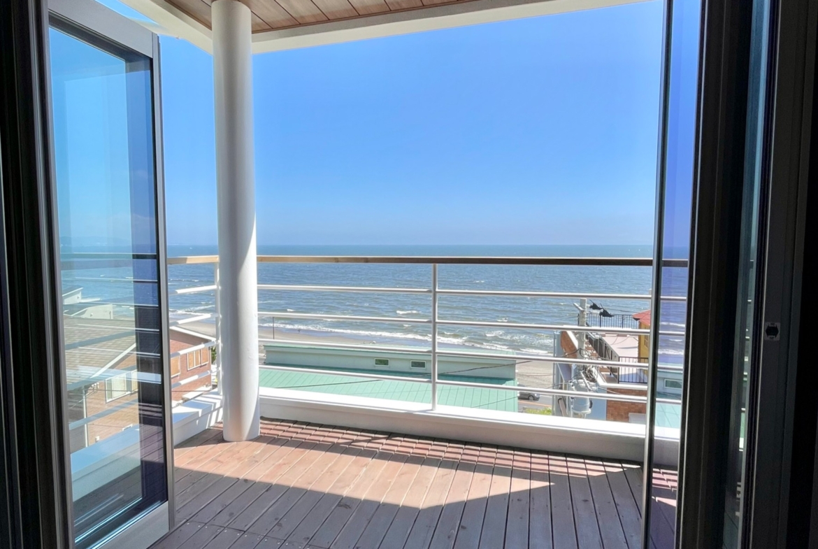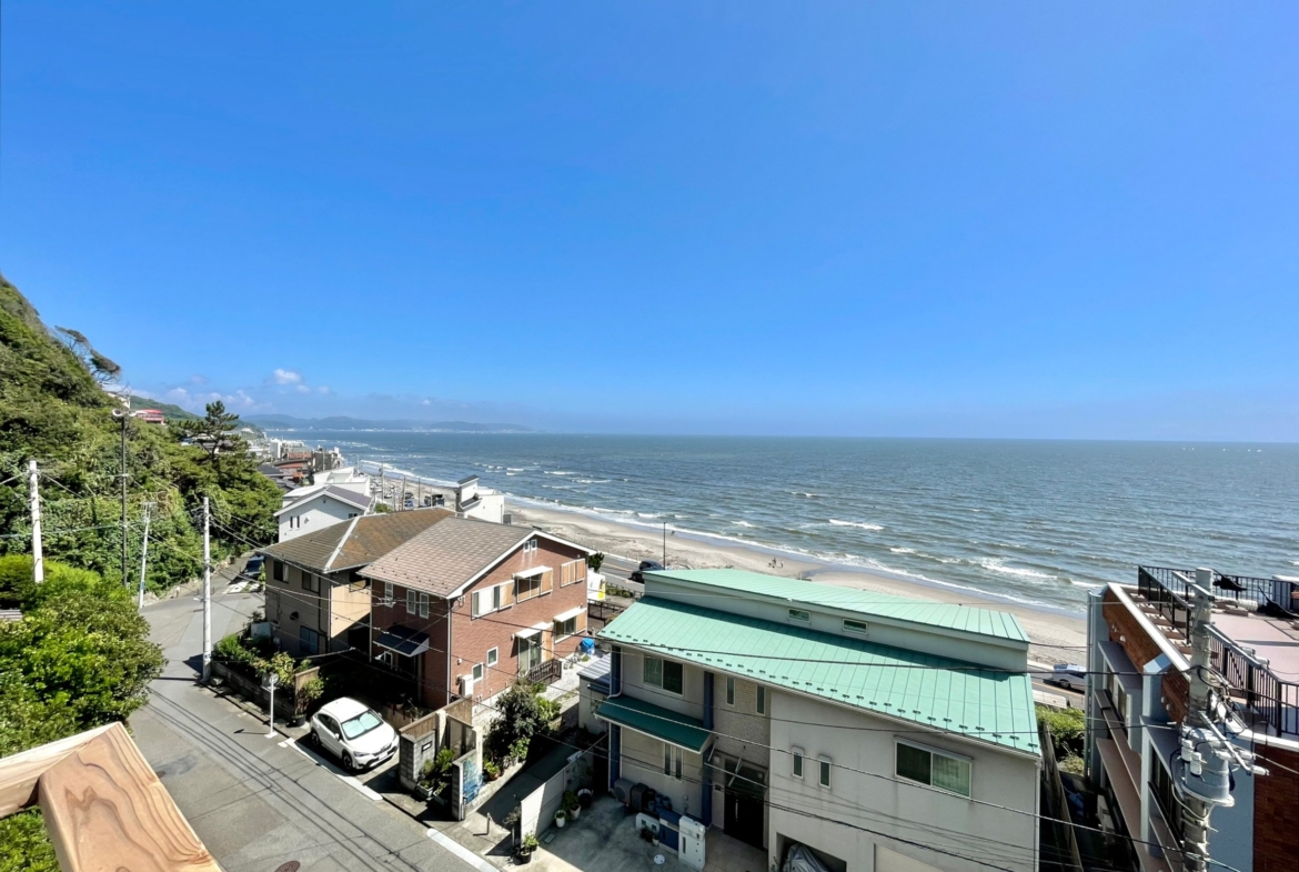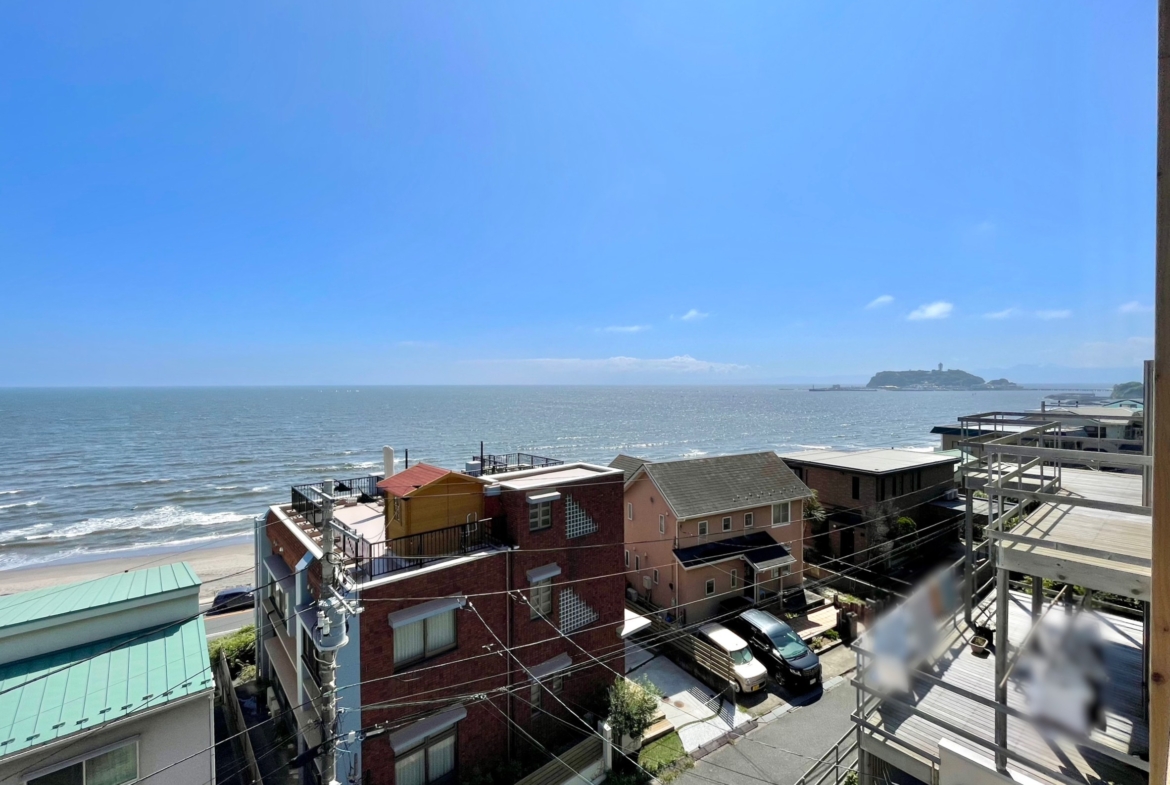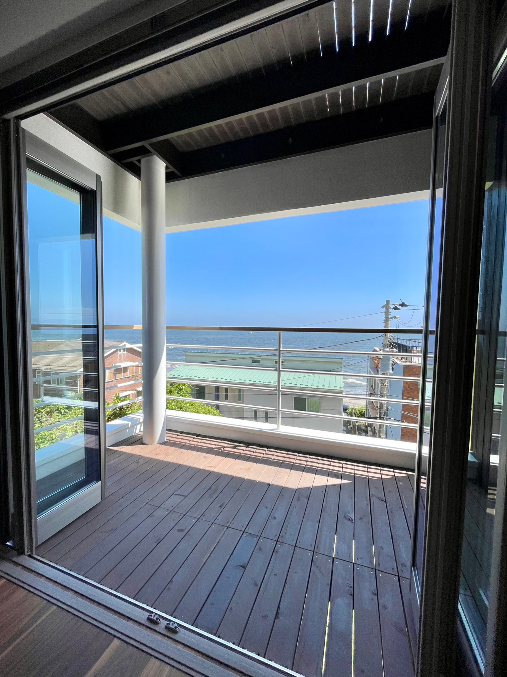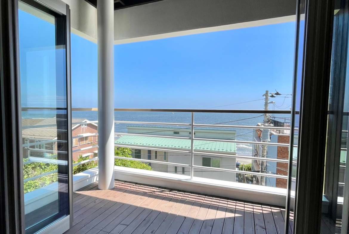 2階、3階のバルコニーから七里ガ浜の海を一望。江ノ島も望めます。