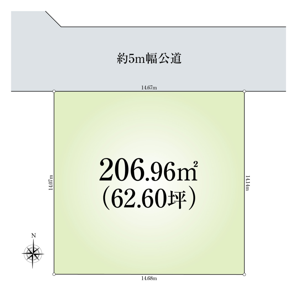 土地面積:206.96㎡(62.6坪)
