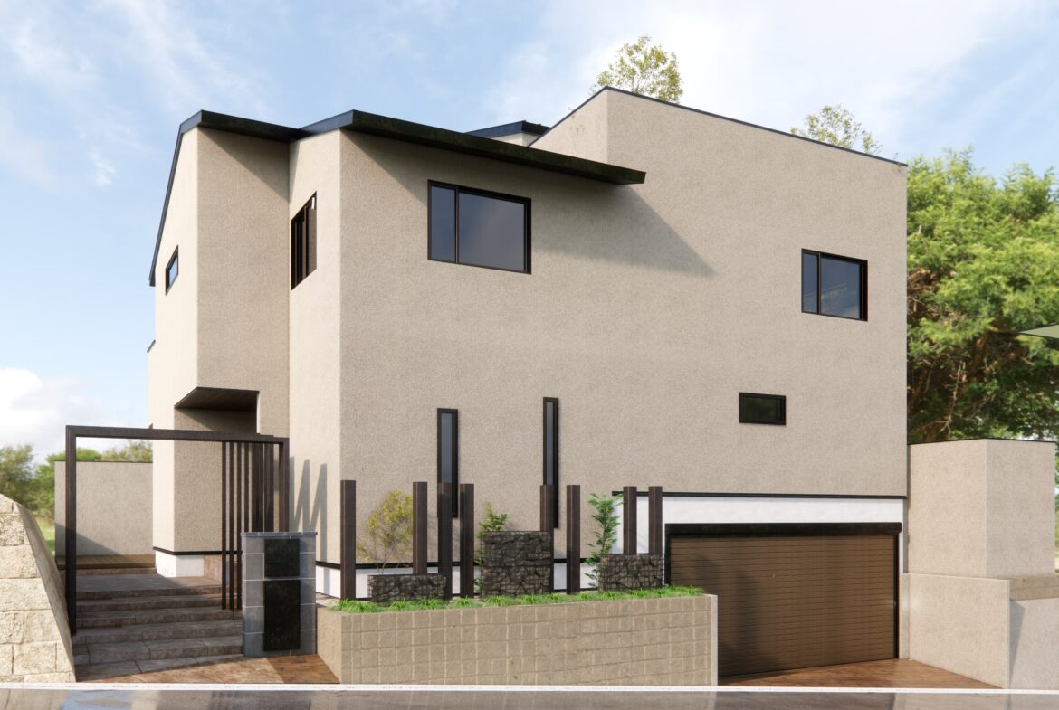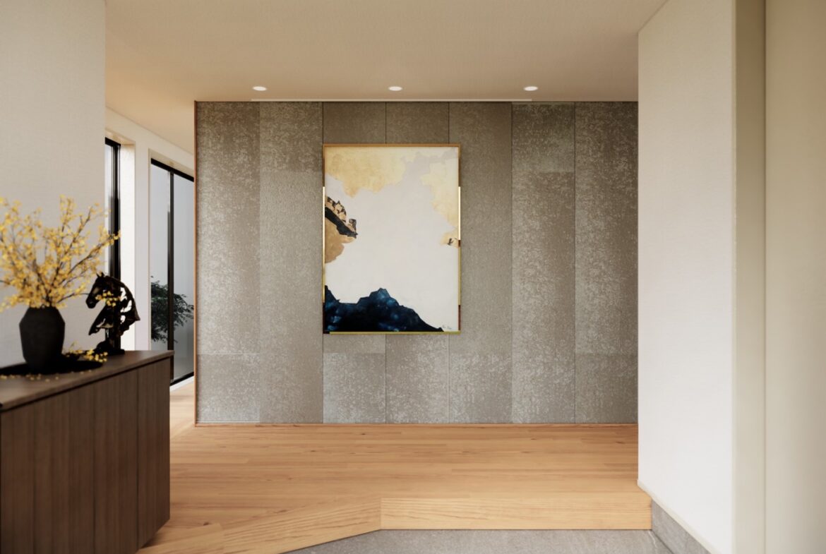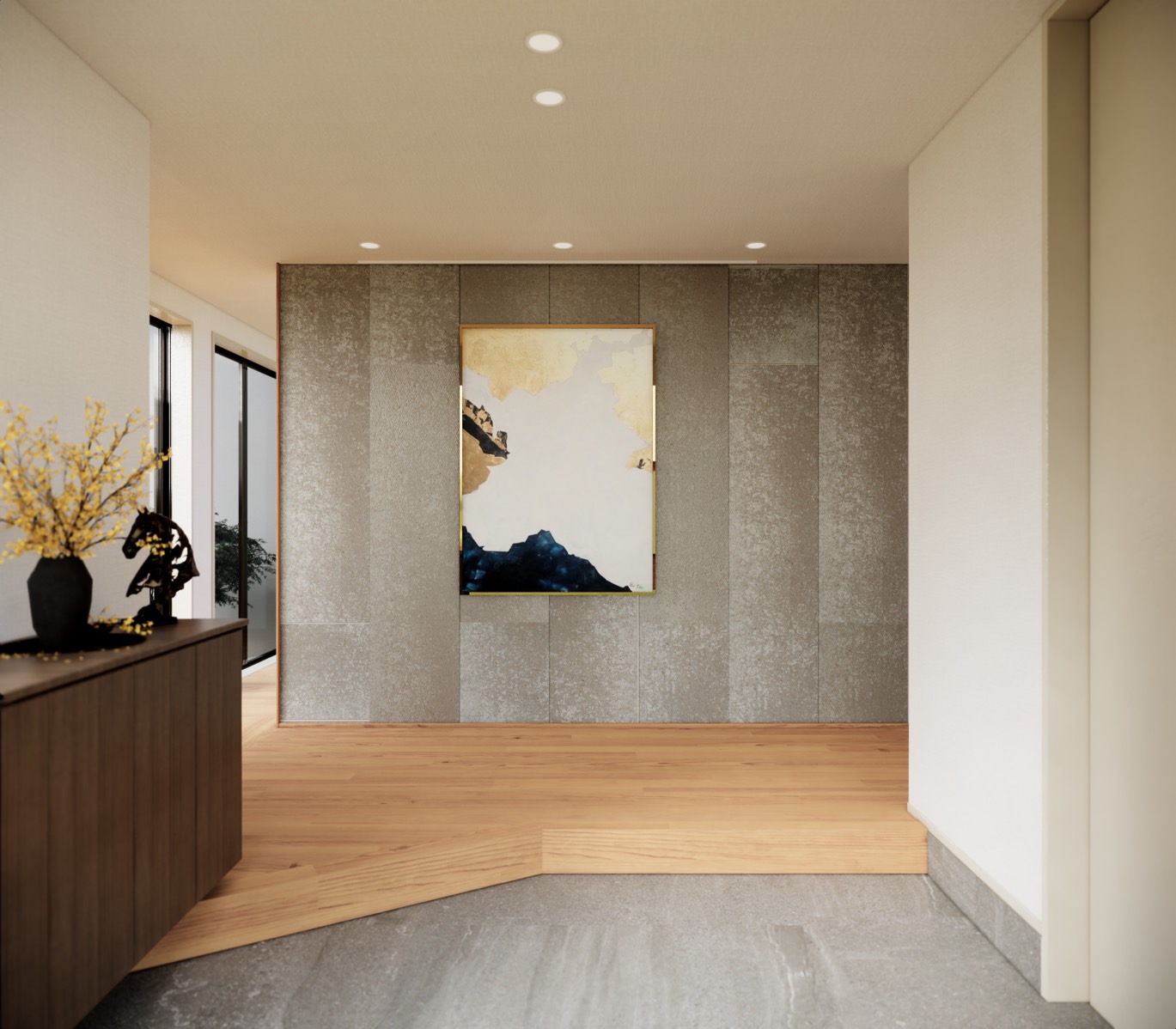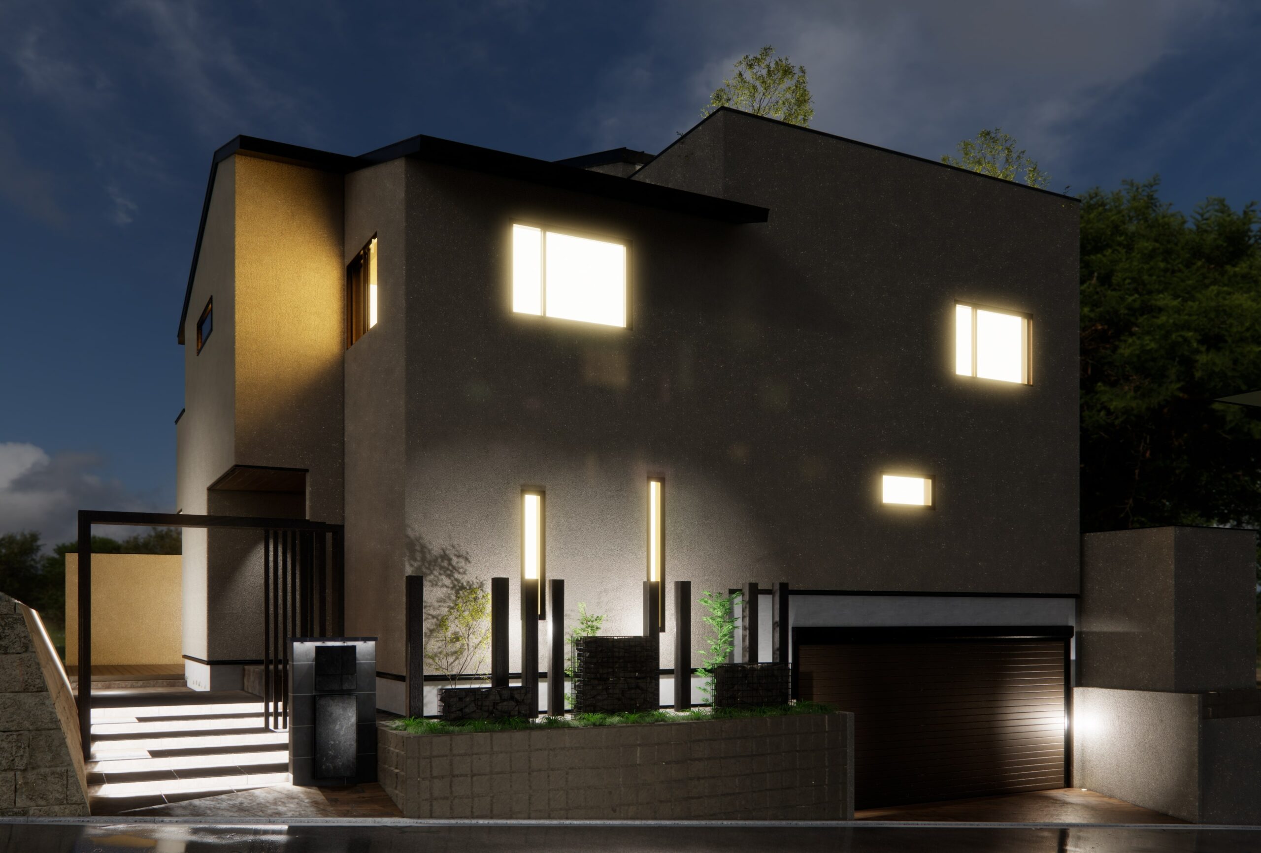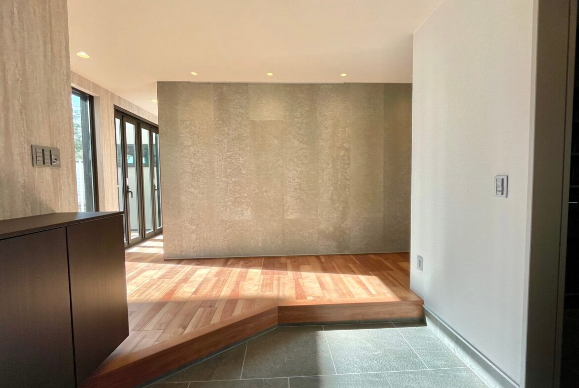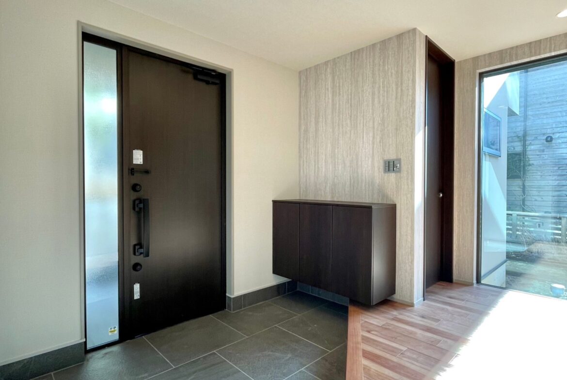 電動シャッター付ガレージには並列2台駐車可。ガレージ内から建物内に出入りできる動線となっています。