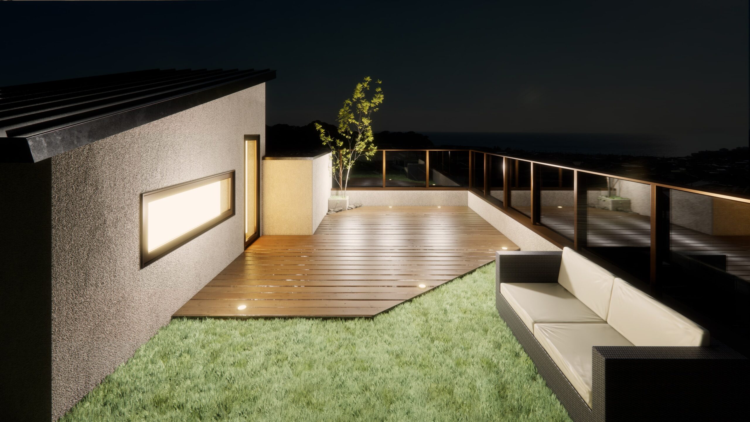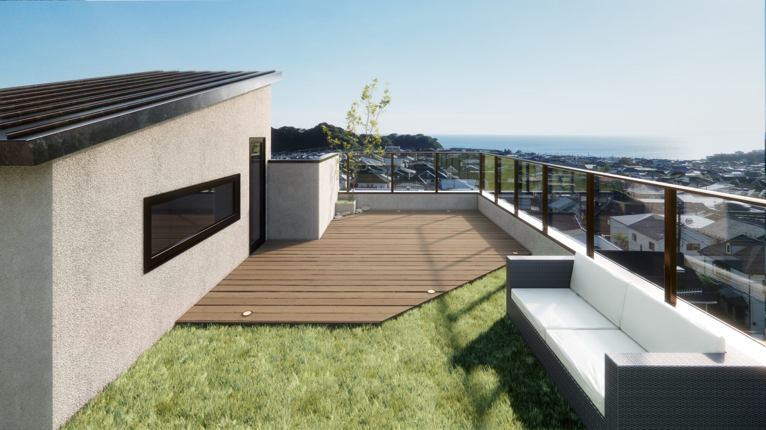 お庭に敷き並べたウッドデッキテラスも魅力です。