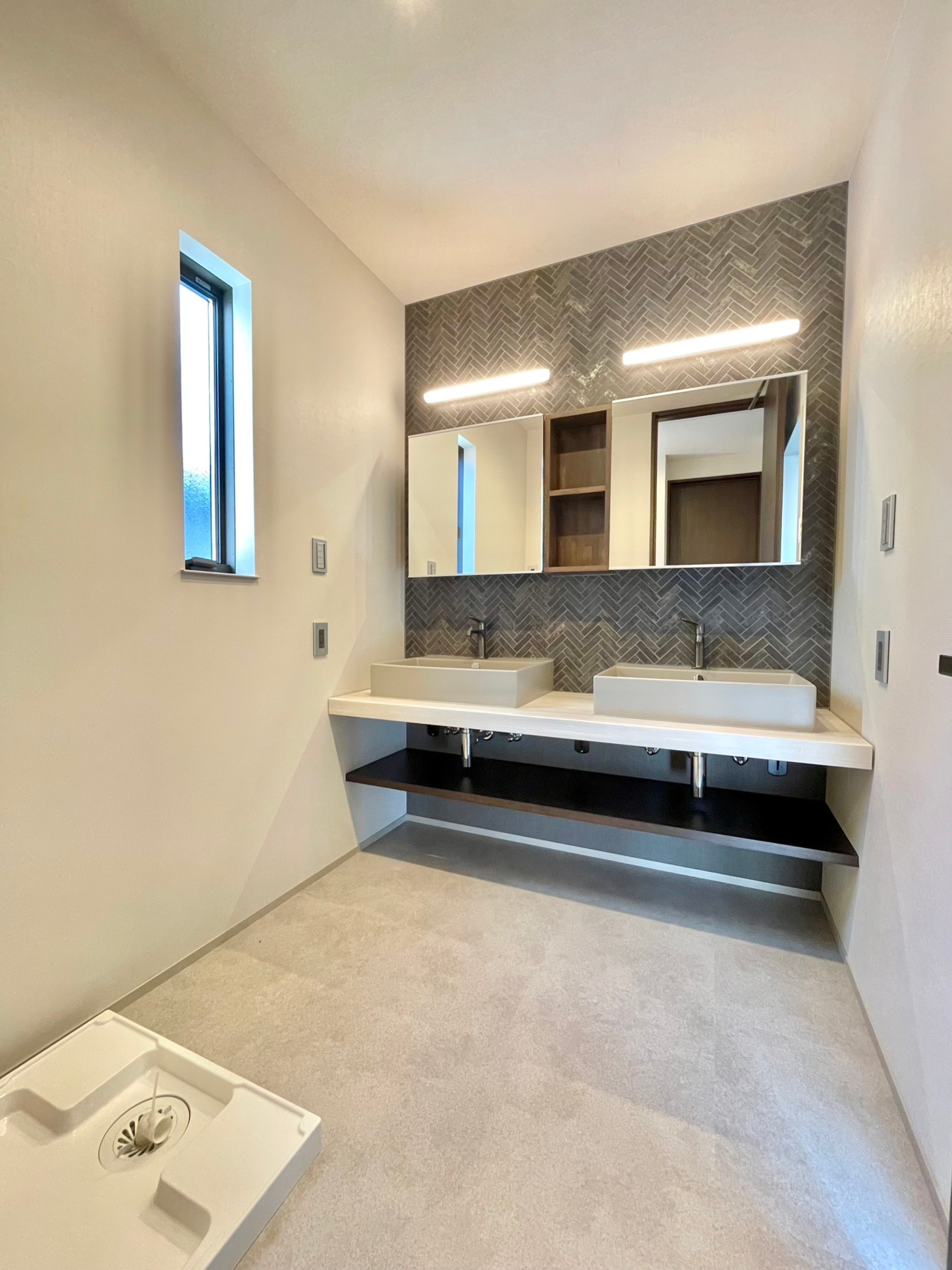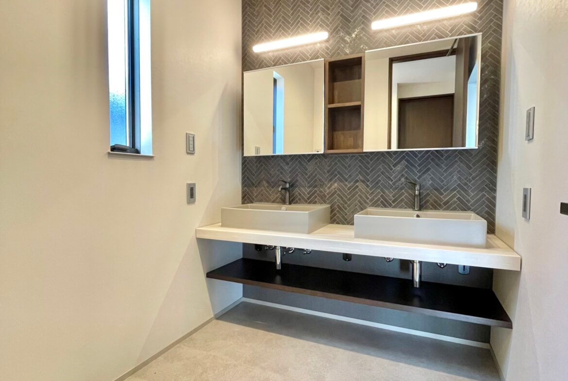 ■造作洗面台2ボウル・ミラーキャビネット付き