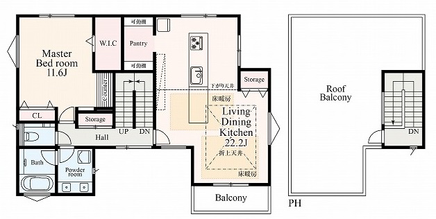 各室6帖以上の広々、収納豊富な間取設計です。