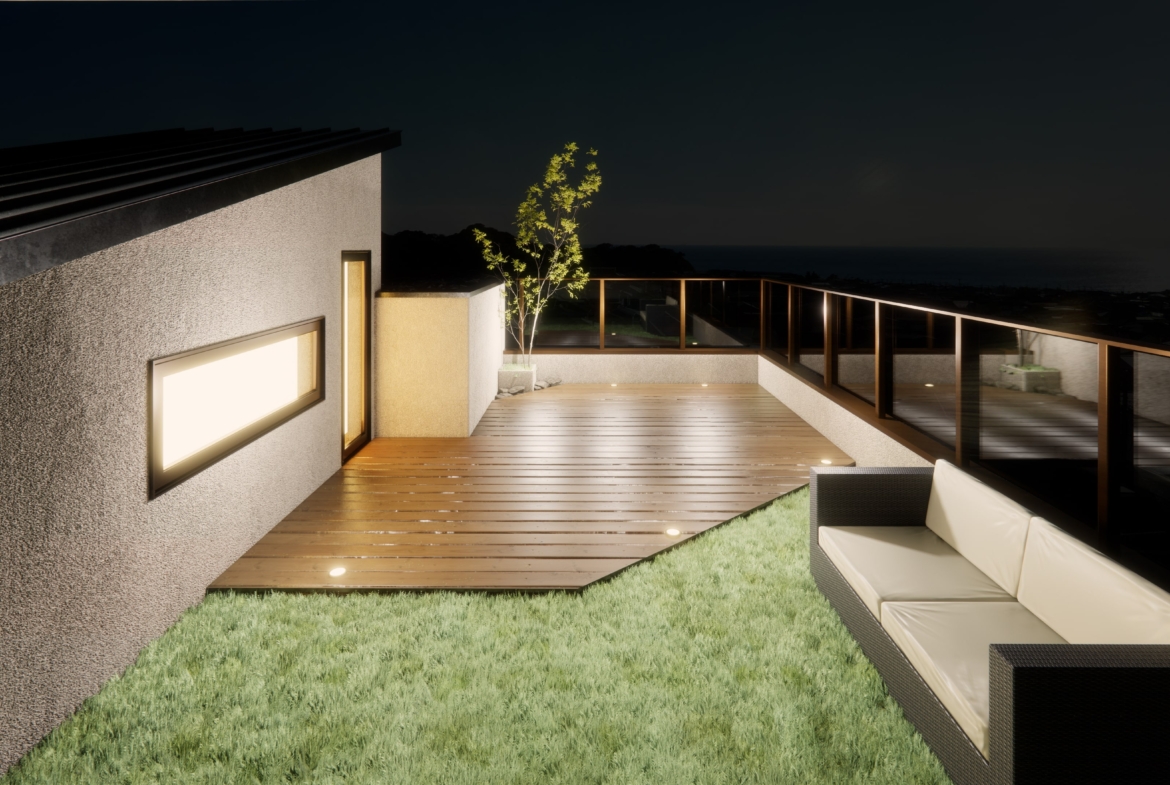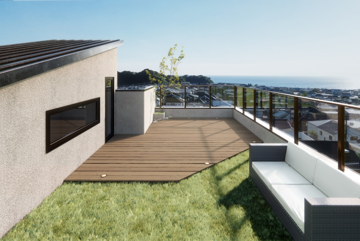 【開放的な屋上庭園から相模湾や富士山を望む住まい】