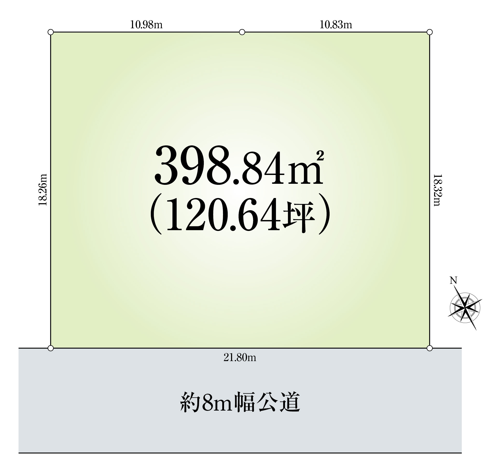 南西側の前面道路も幅員約8mと広々、陽当りも良く開放的な環境です。