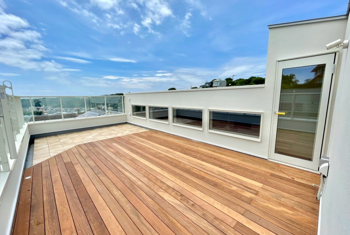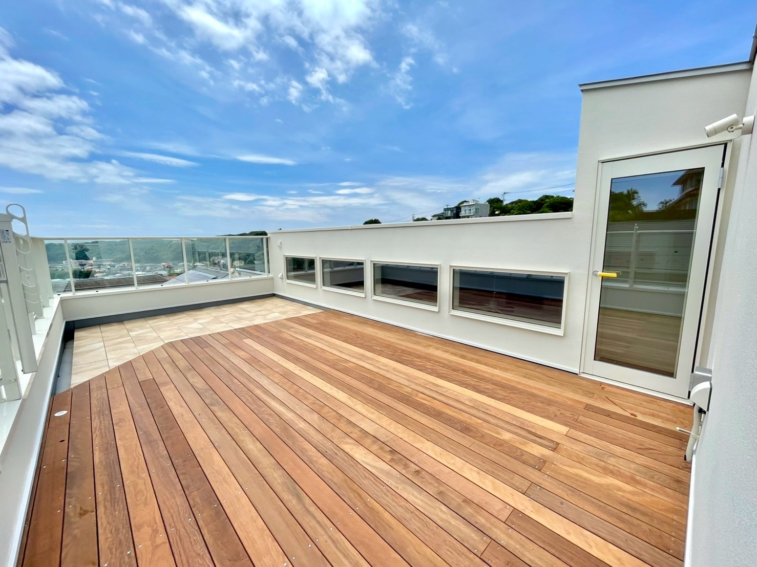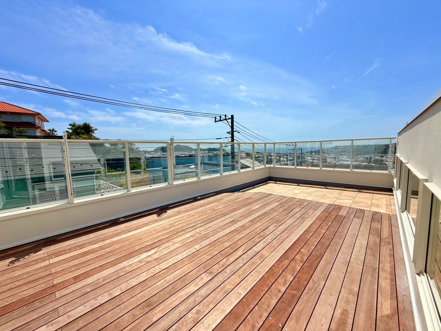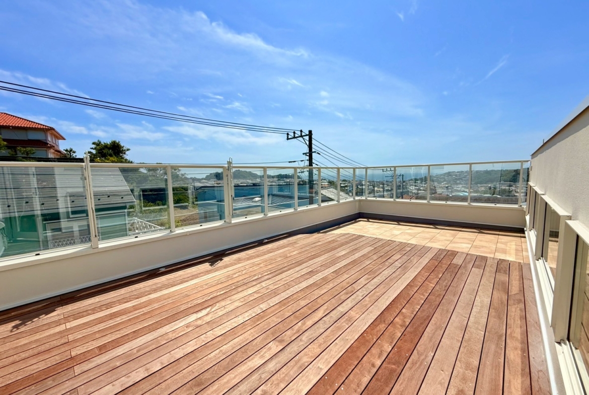 【相模湾や富士山を望む開放的な屋上と34帖超の大空間】