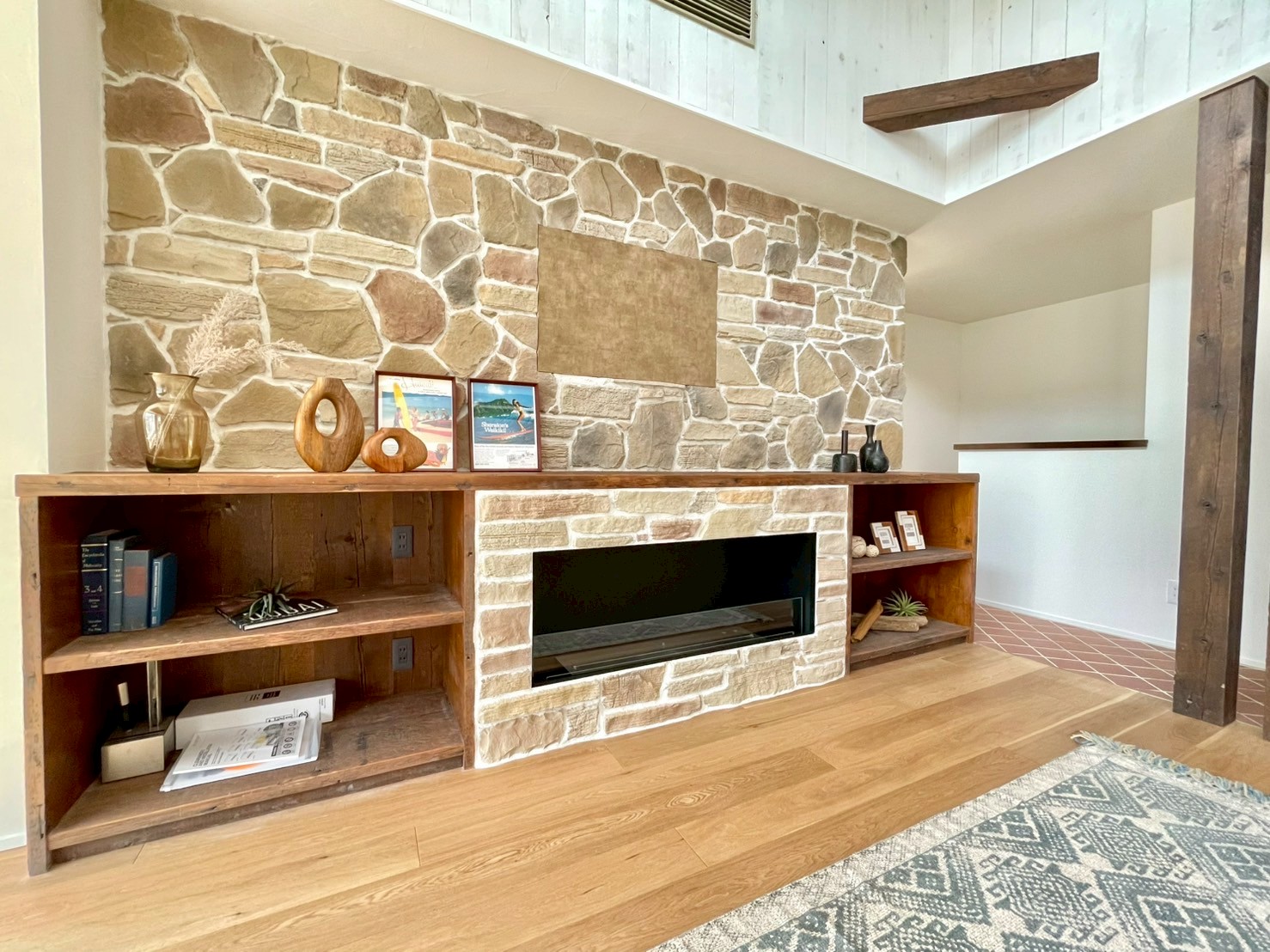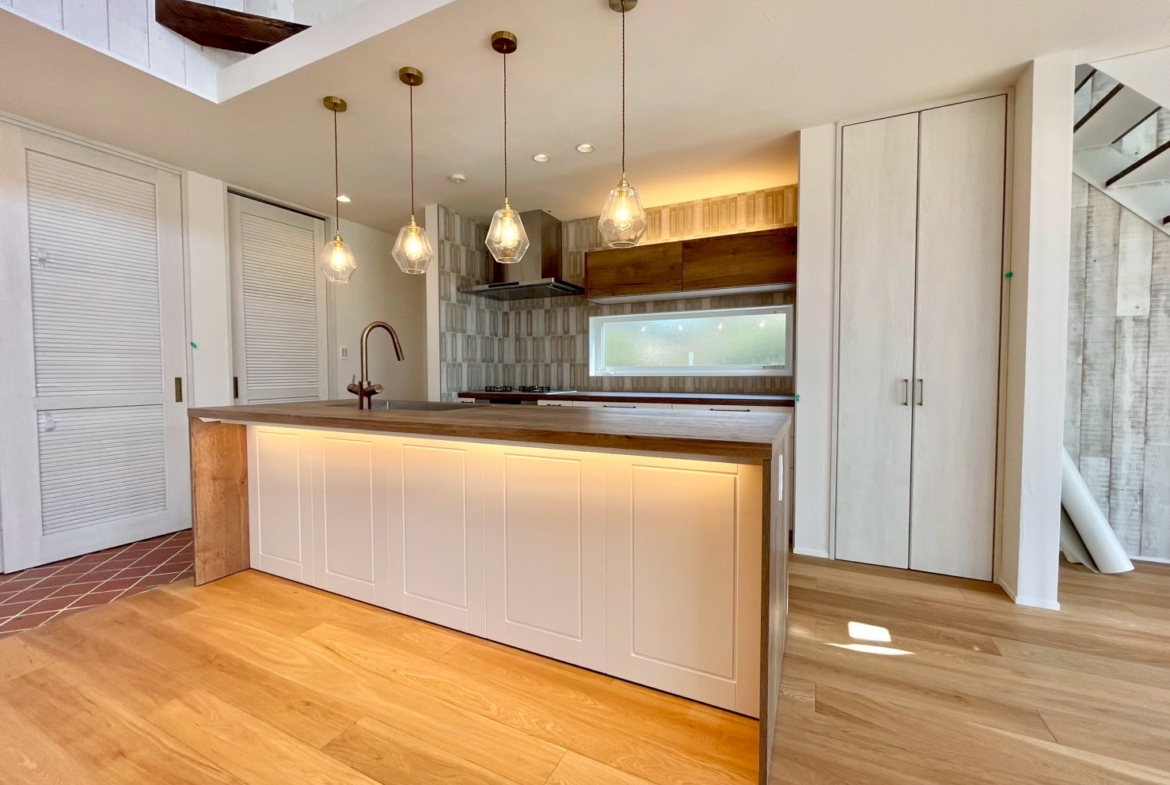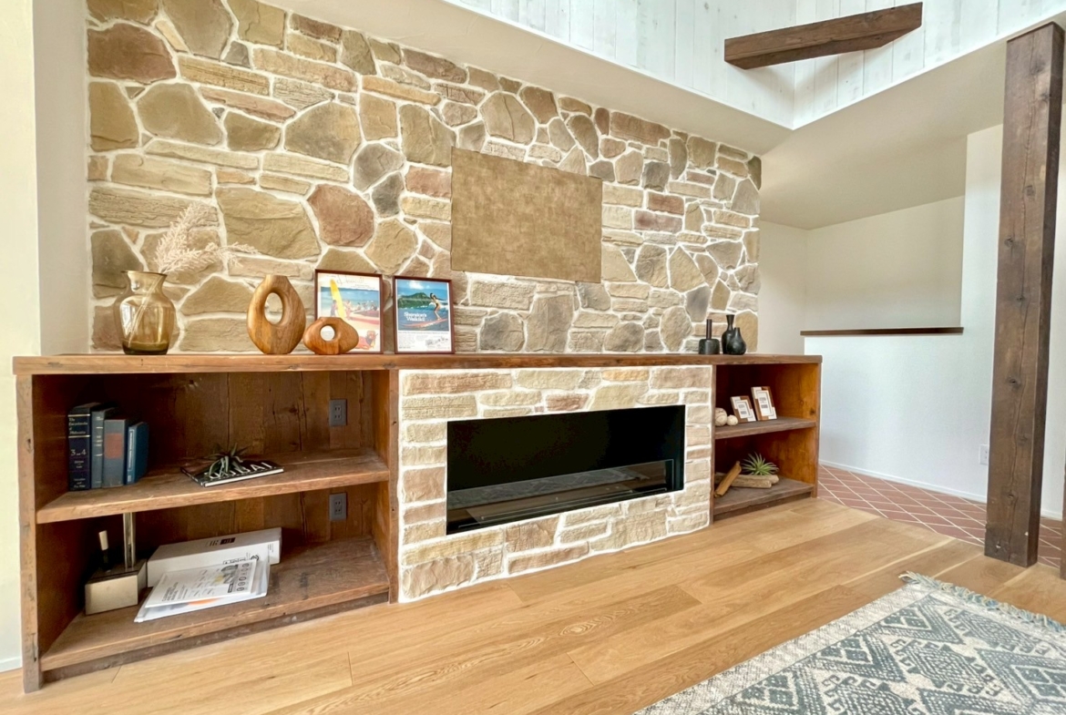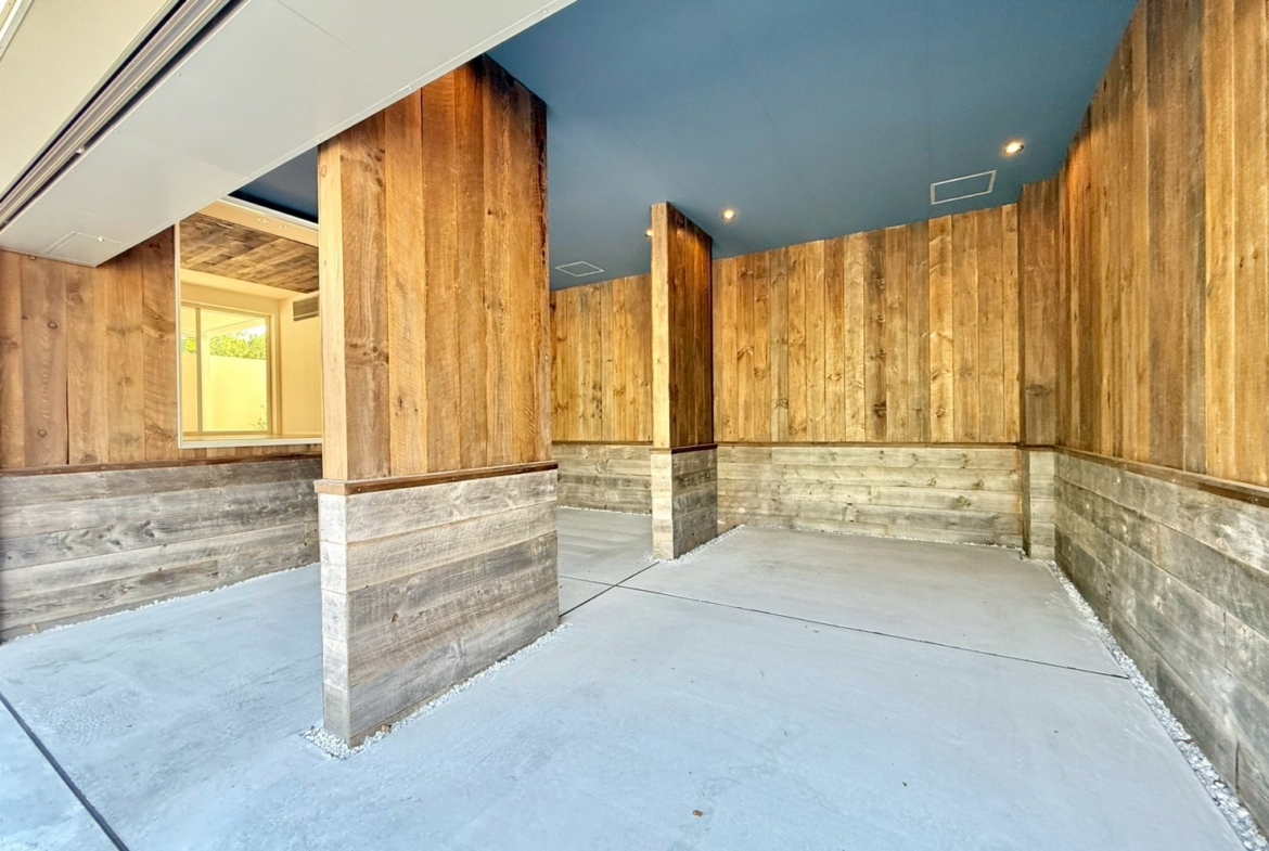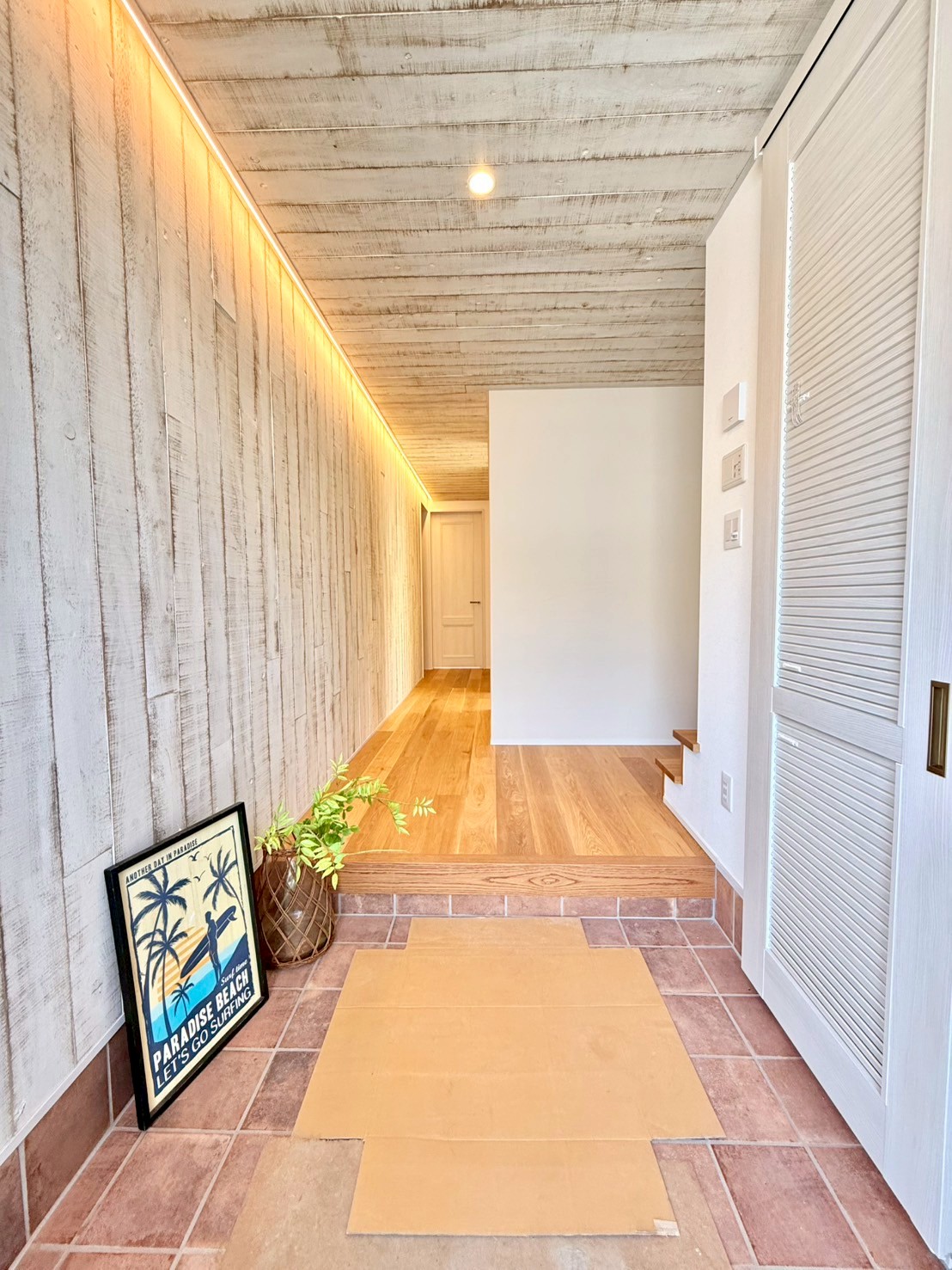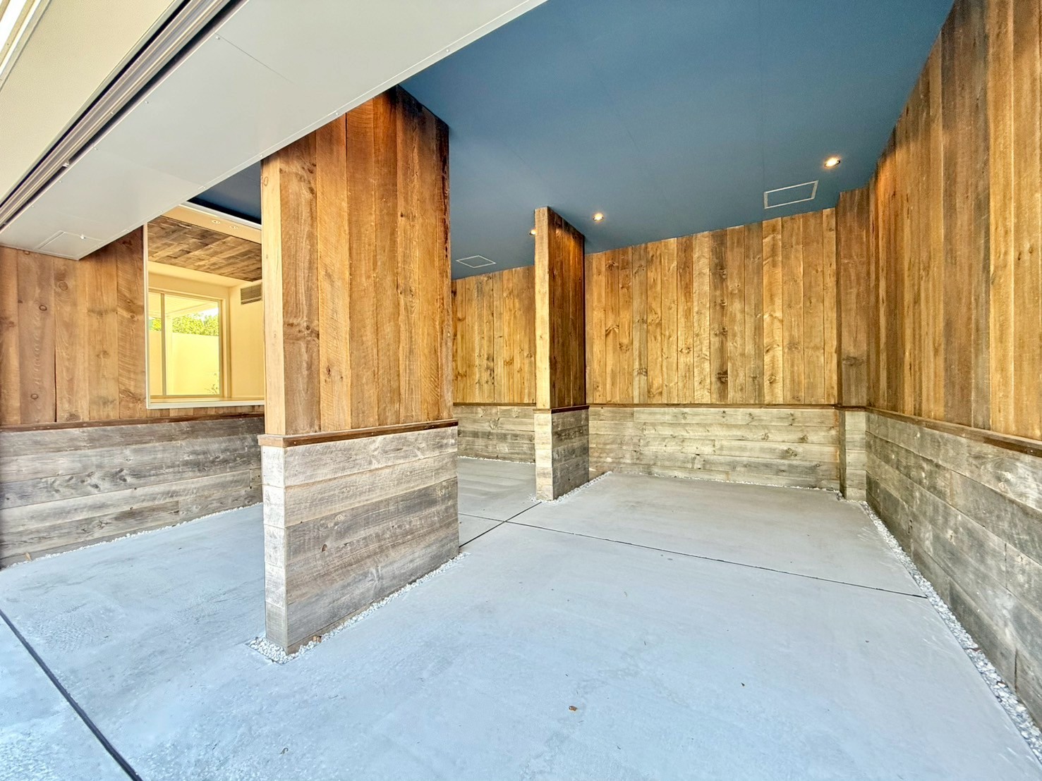 スタイリッシュな外観に古材を用いたカルフォルニアスタイルの建物内とガレージが魅力。