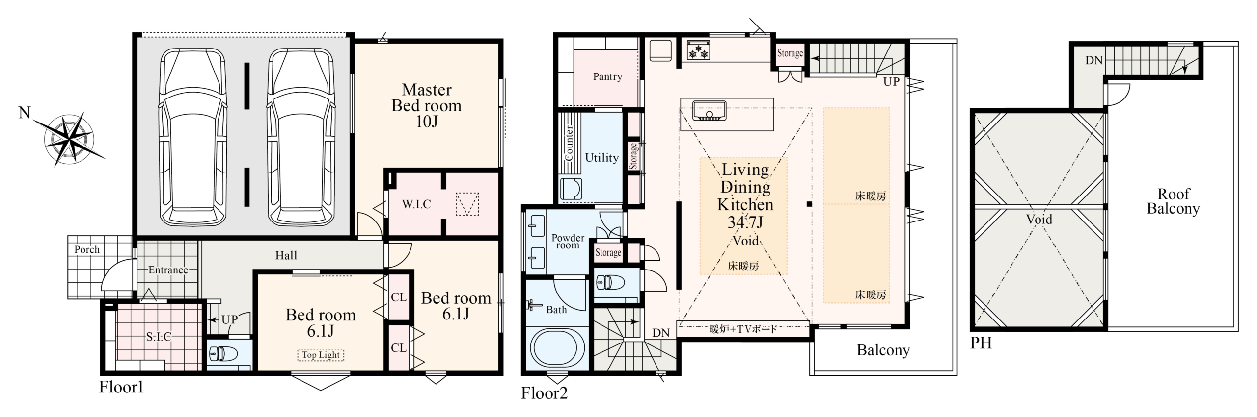 間取り:3LDK(LDK34.7帖 / 居室①10.0帖 / 居室②6.1帖 / 居室③6.1帖)