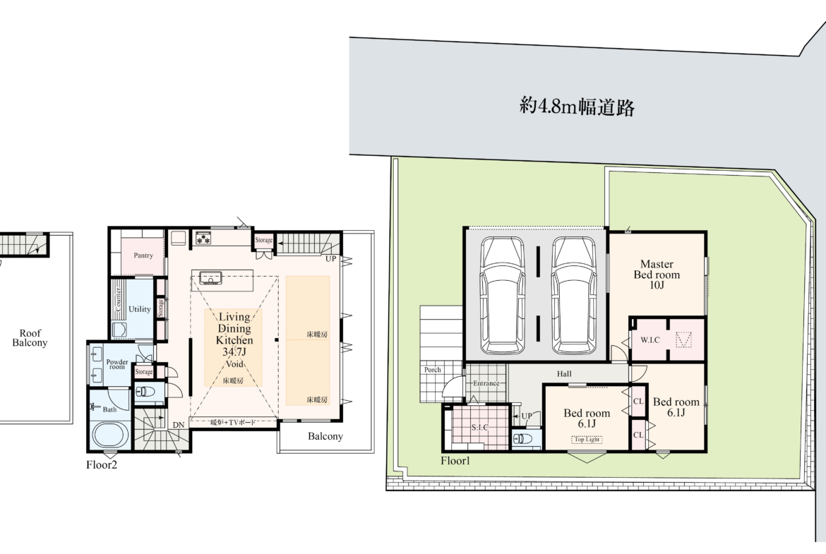 • 建物面積: 189.62㎡(うち車庫34.19㎡)