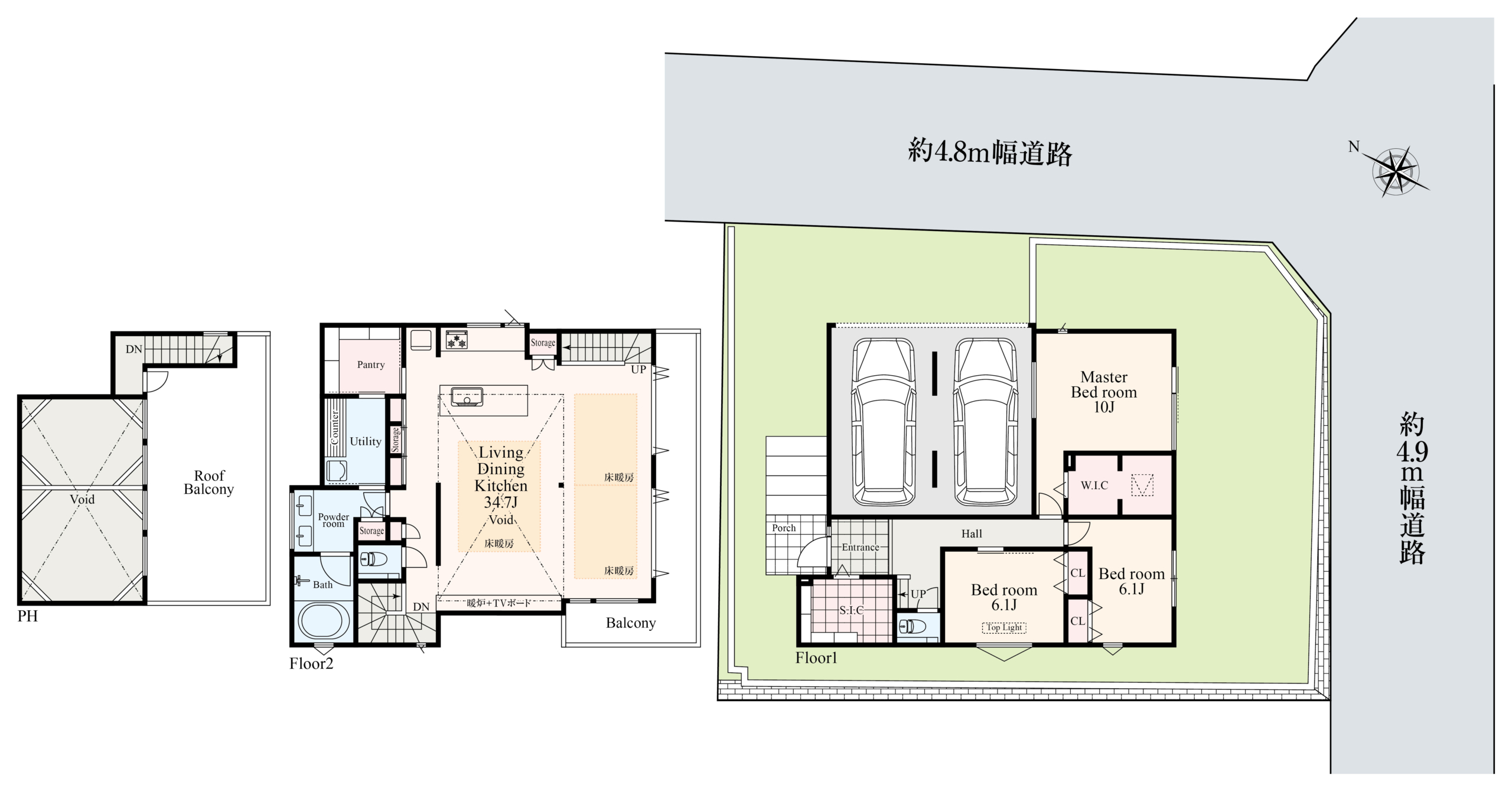 • 接道状況: 北東4.9m公道・南東4.9m公道