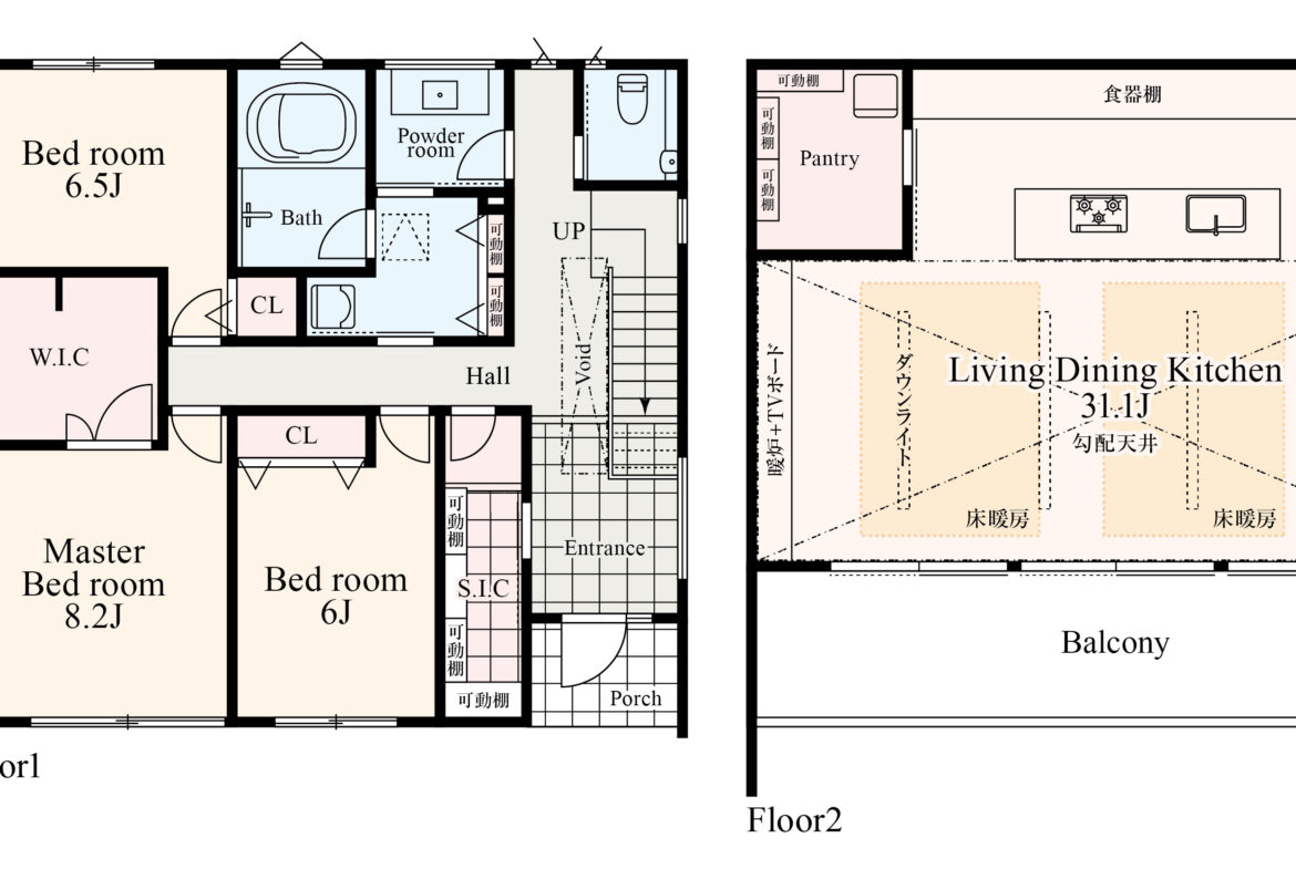 圧倒的な開放感 31帖超リビングダイニングキッチン 床暖房付