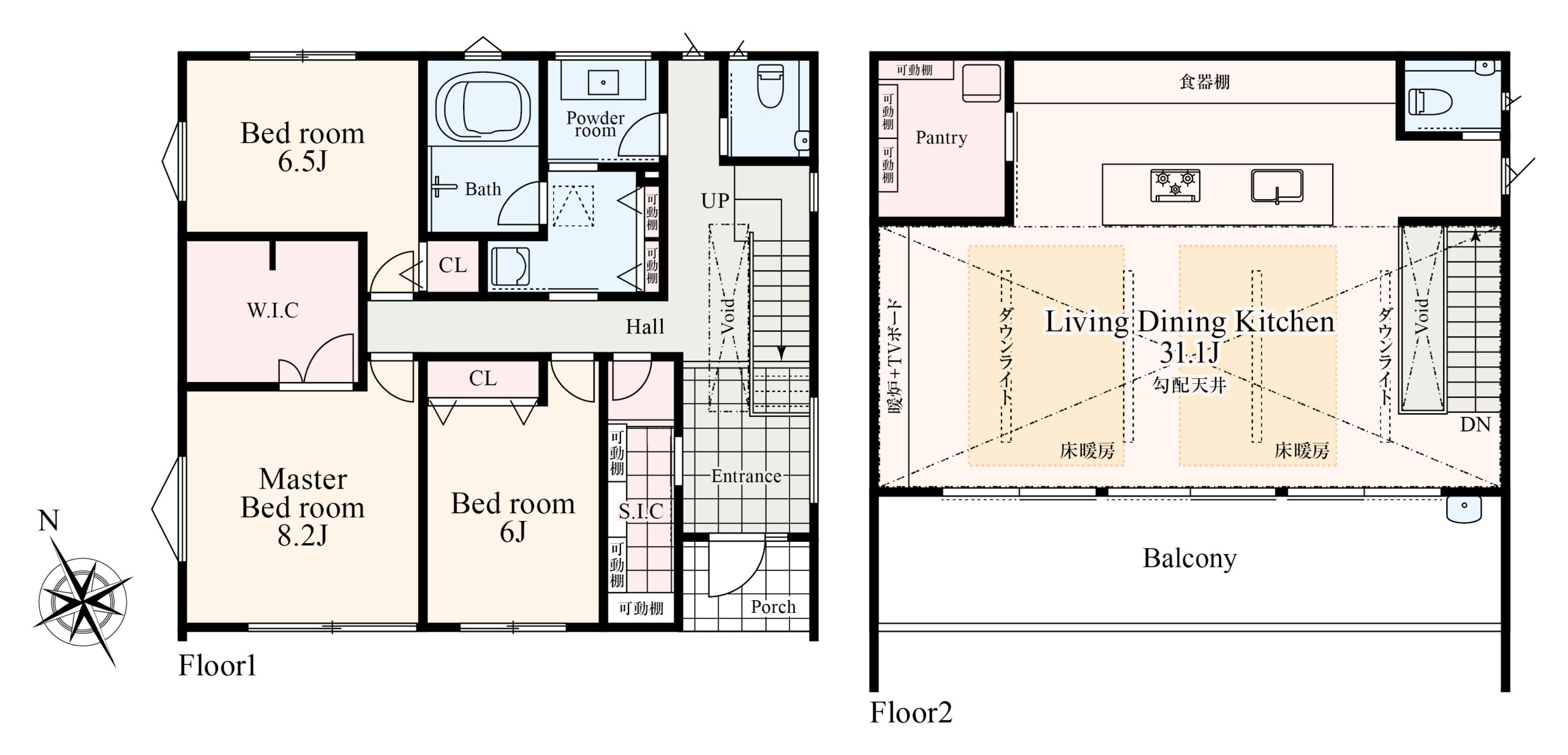 間取り:3LDK(LDK31.1帖 / 寝室8.2帖 / 居室①6.5帖 / 居室②6帖)