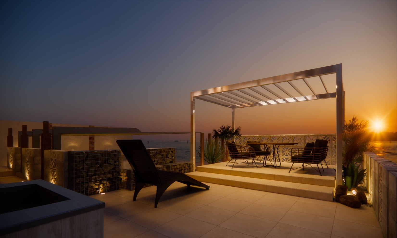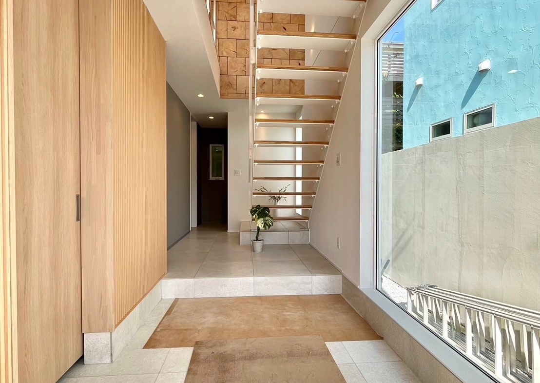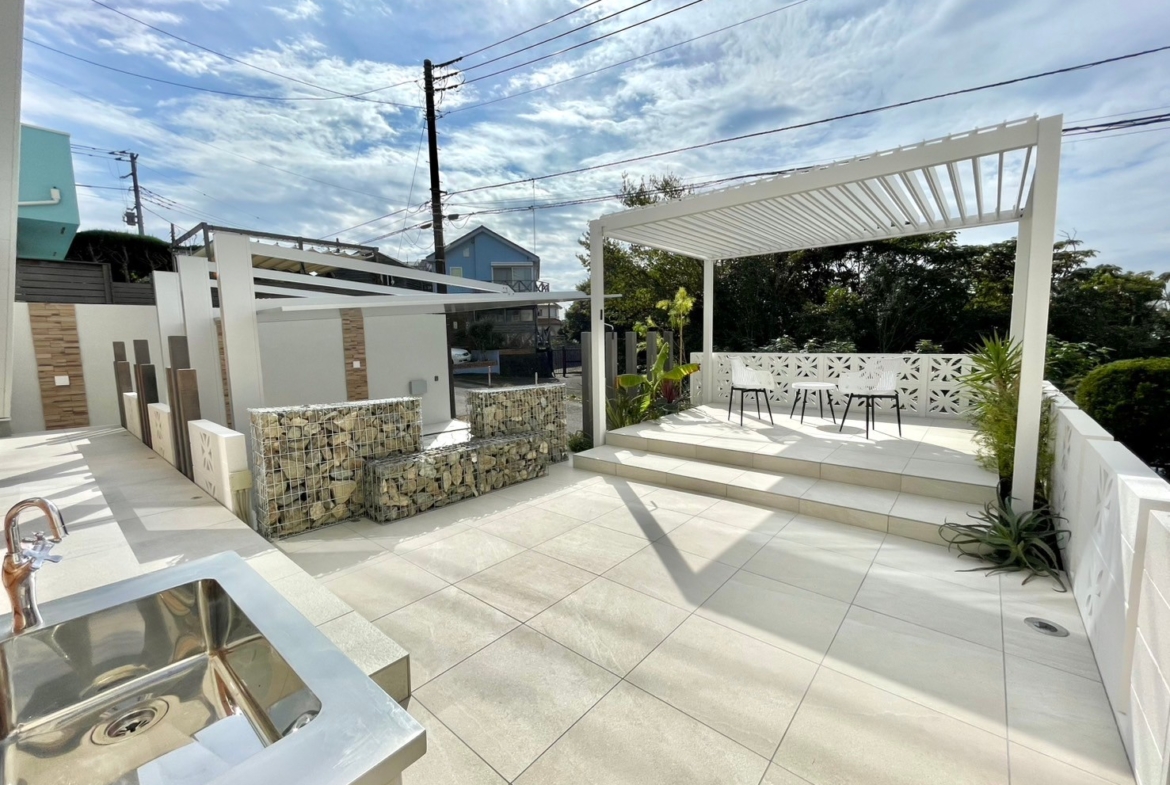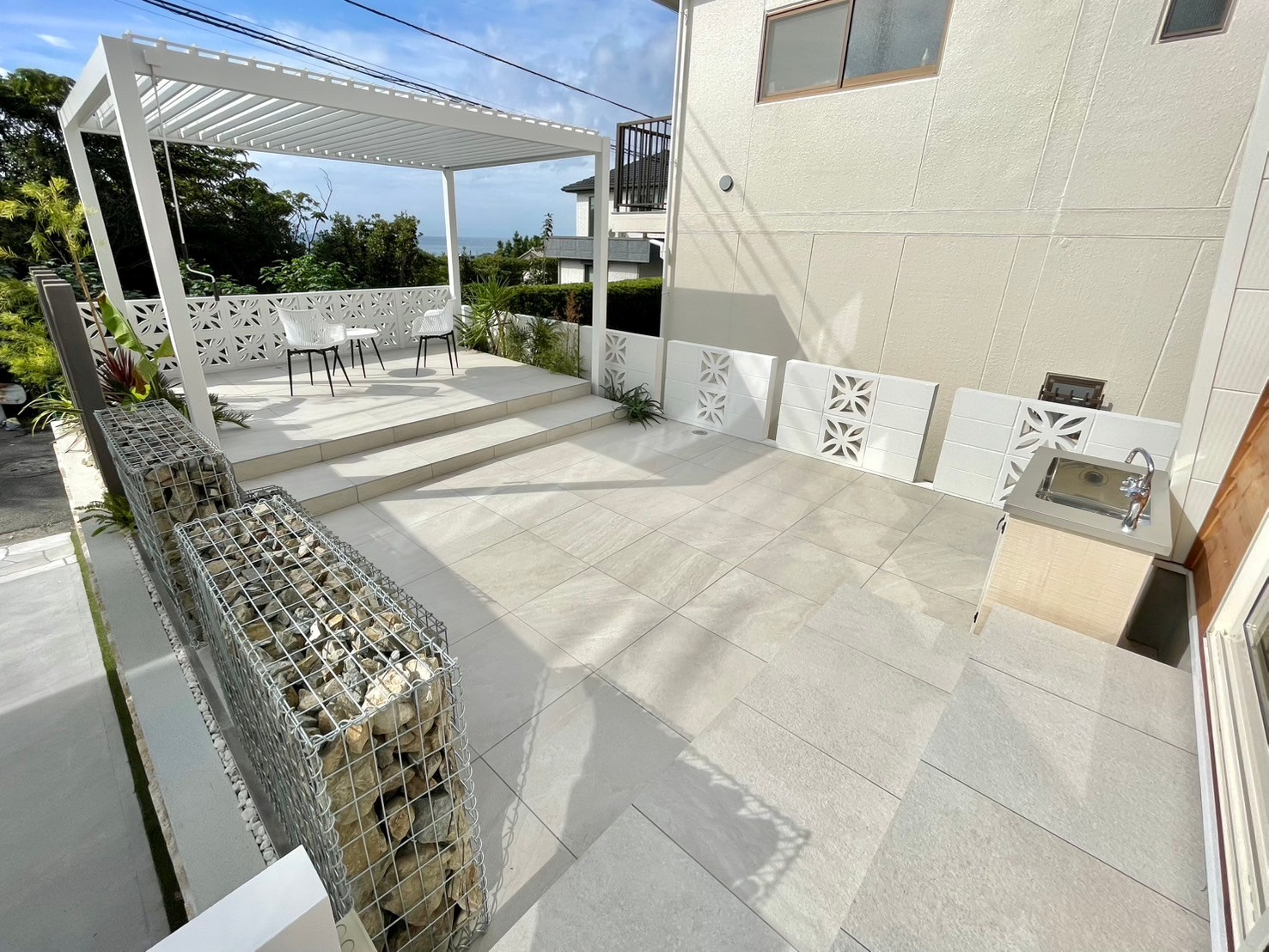 1階にはパティオを設けたタイル張りのガーデンテラス。