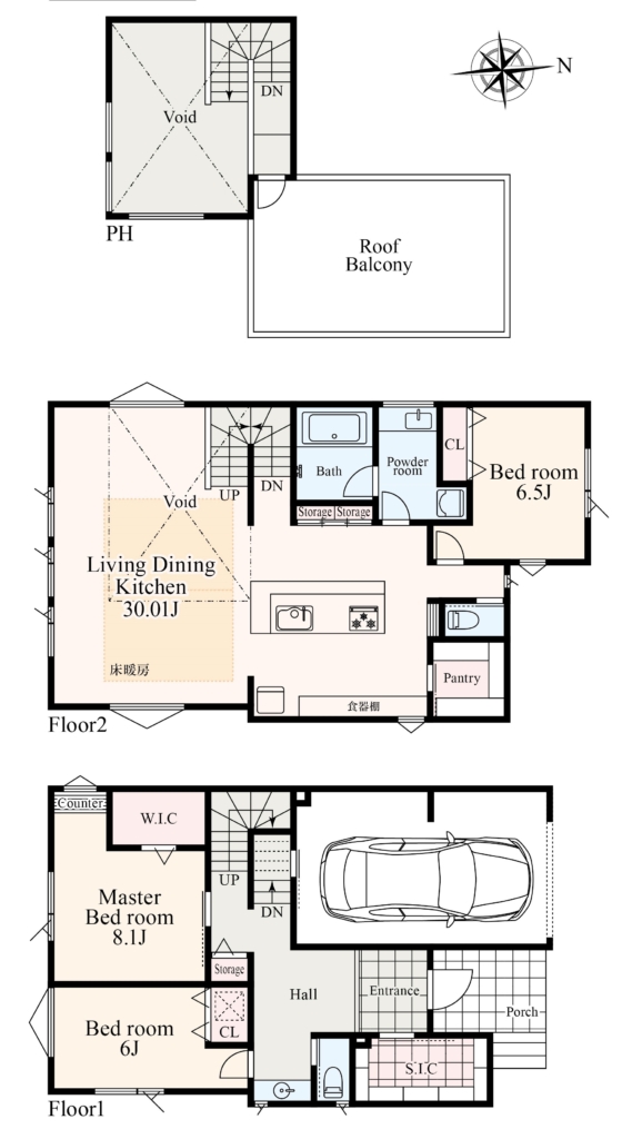 間取:3LDK(LDK30.1帖 / 居室①8.1帖 / 居室②6.0帖 / 居室③6.5帖)